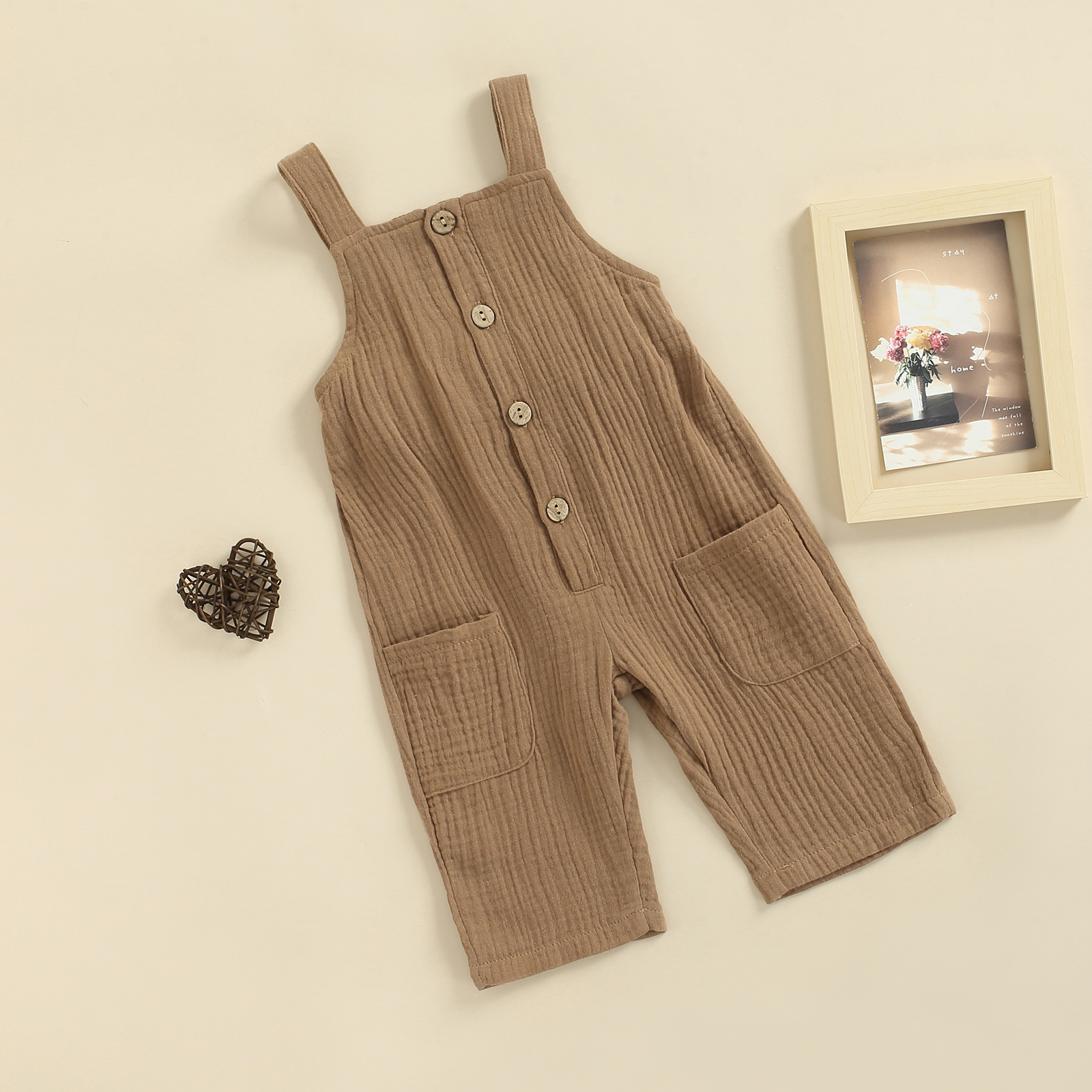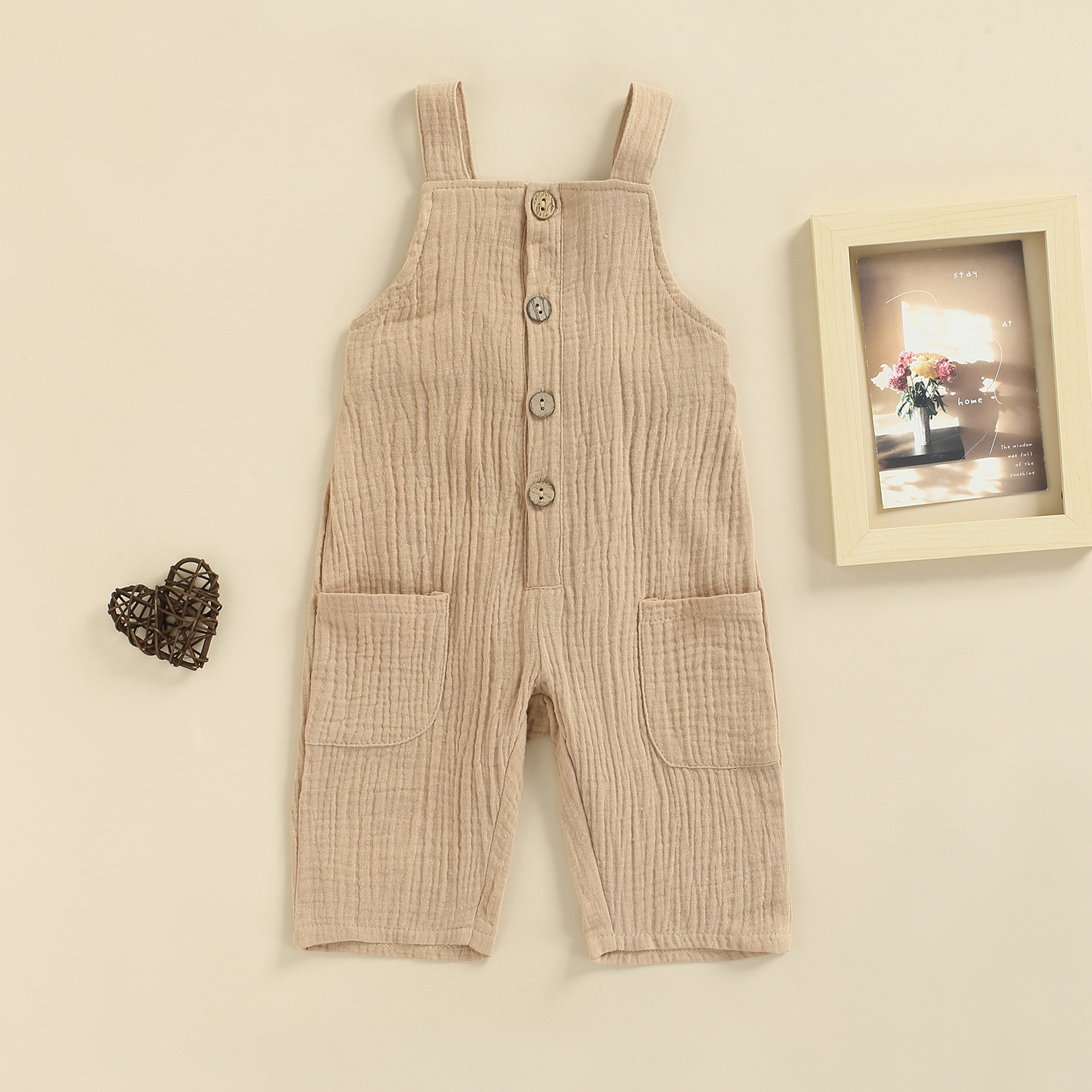 Solid color square collar button-down jumpsuit, simple style makes it easy to match with daily clothes.