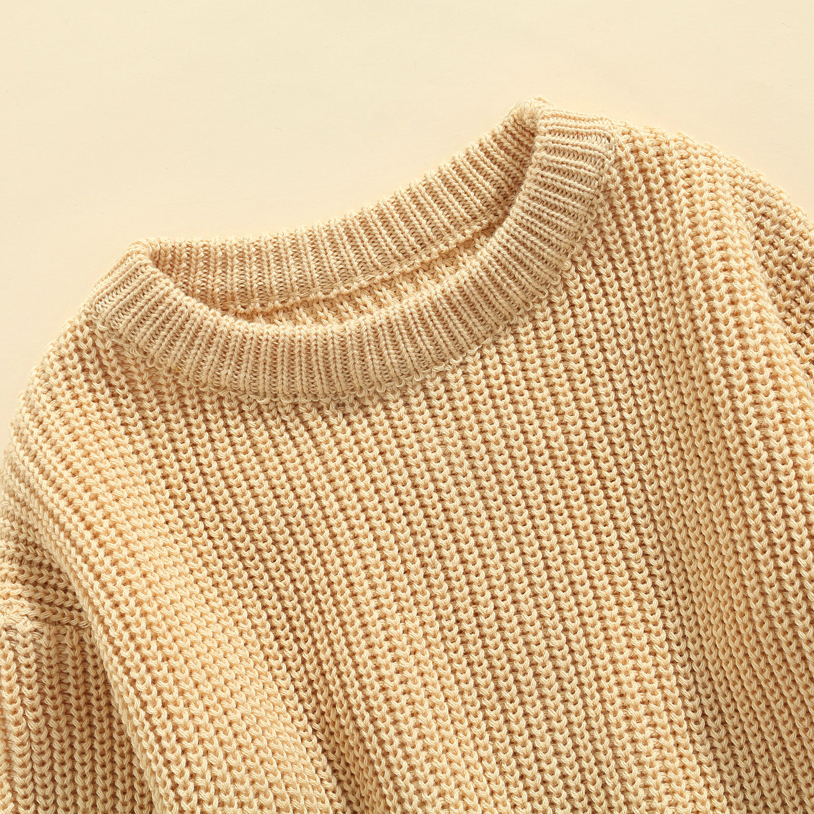 Toddler Baby Round Neck Sweaters, Winter Warm Long Sleeve Candy Color Knit Pullovers
