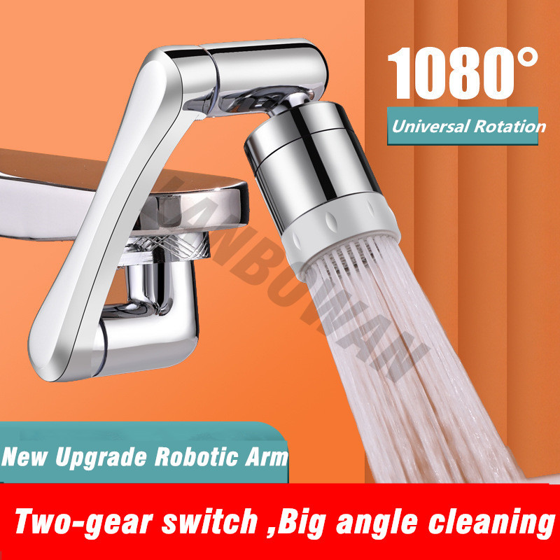 1080 Degree Universal Rotation Swivel Robotic Arm Dual Mode Extender Faucet Aerator Kitchen Washbasin Plastic Tap Splash Filter Bubbler Nozzle