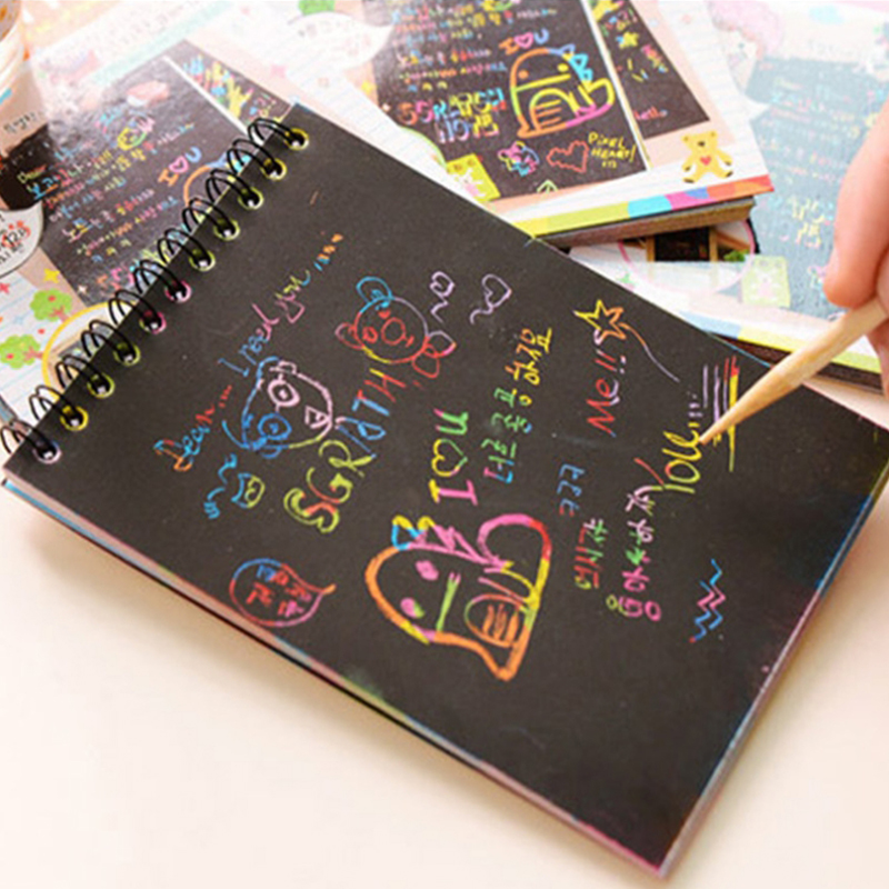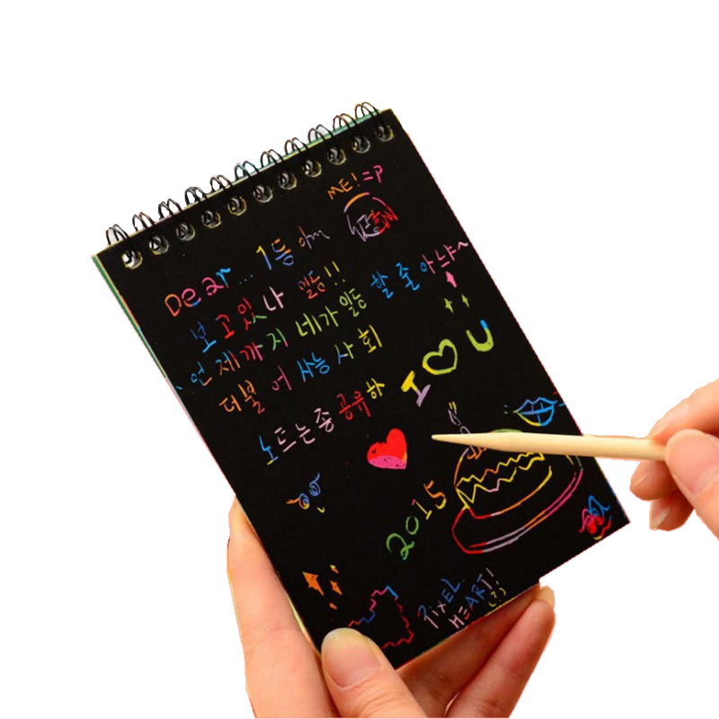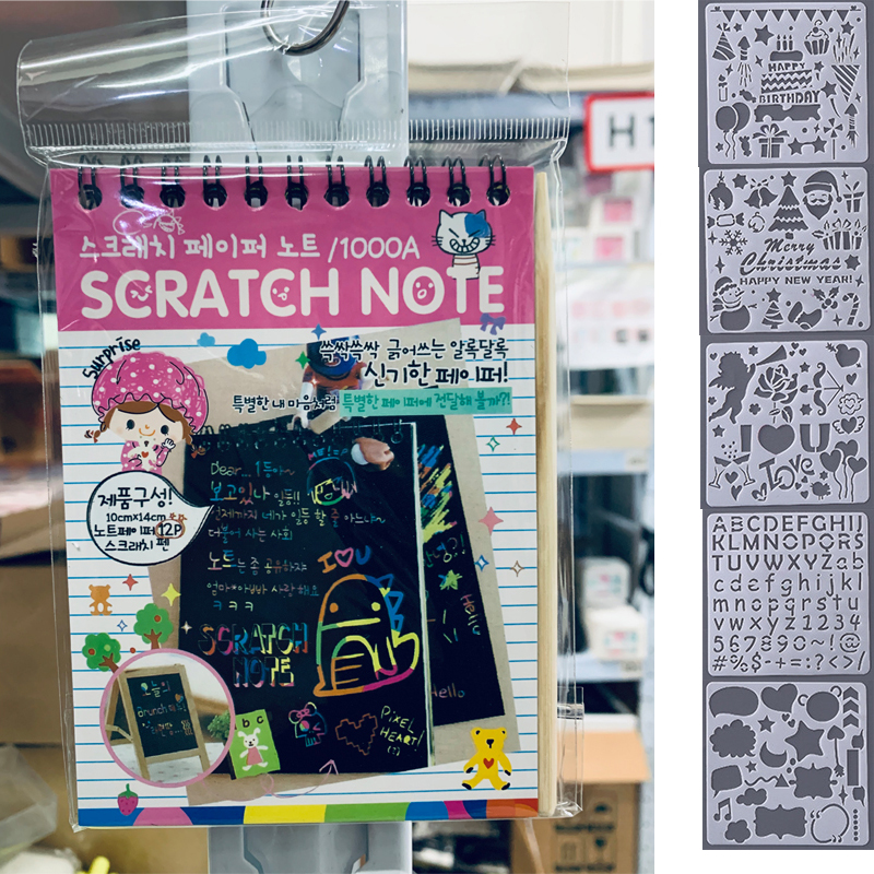 12 Sheets Magic Color Rainbow Scratch Art Paper Card Set with Graffiti Stencil for Drawing Stick DIY Scratch Painting Toy Kids