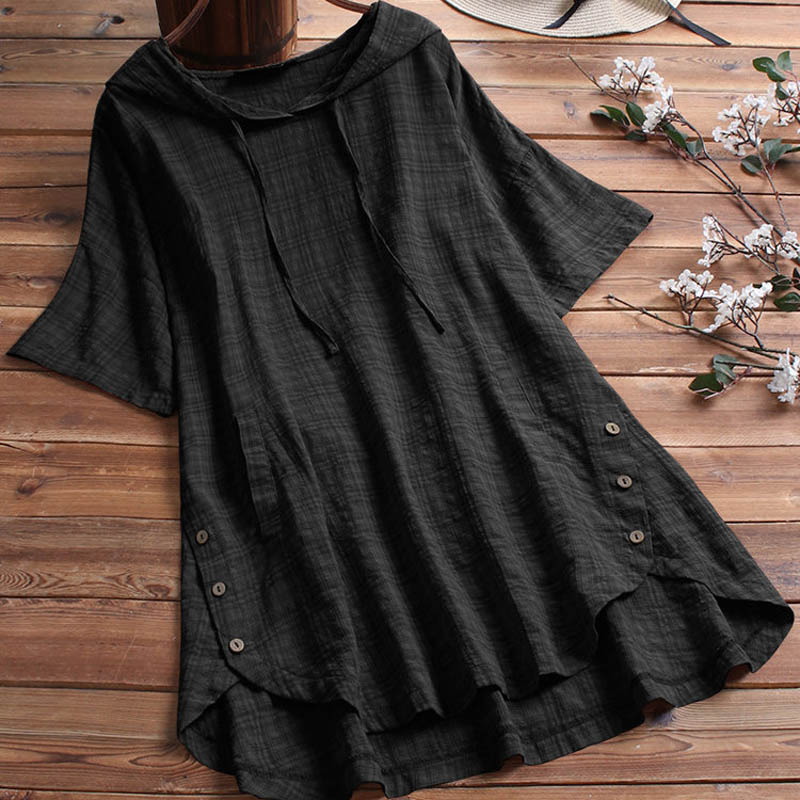 150Kg Plus Size Bust 153cm Women's Summer Hooded V-Neck Short Sleeve Loose Plaid T-Shirt 6XL 7XL 8XL 9XL 7 Colors