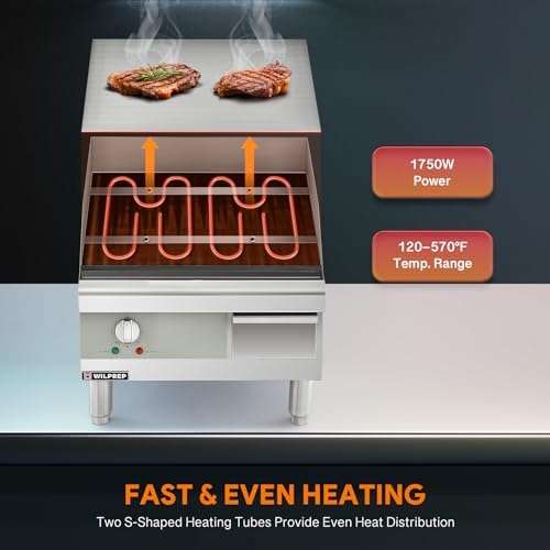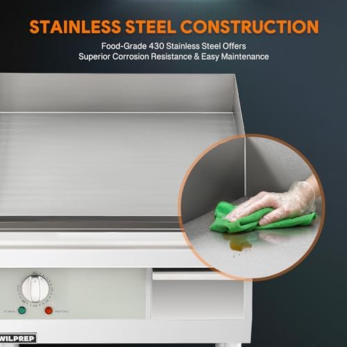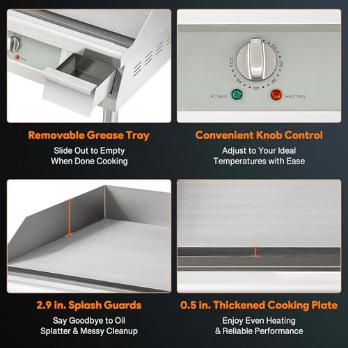 This electric griddle is adaptable to various countertop or kitchen setups, thanks to its adjustable legs ranging from 3.9 to 5.5 inches.