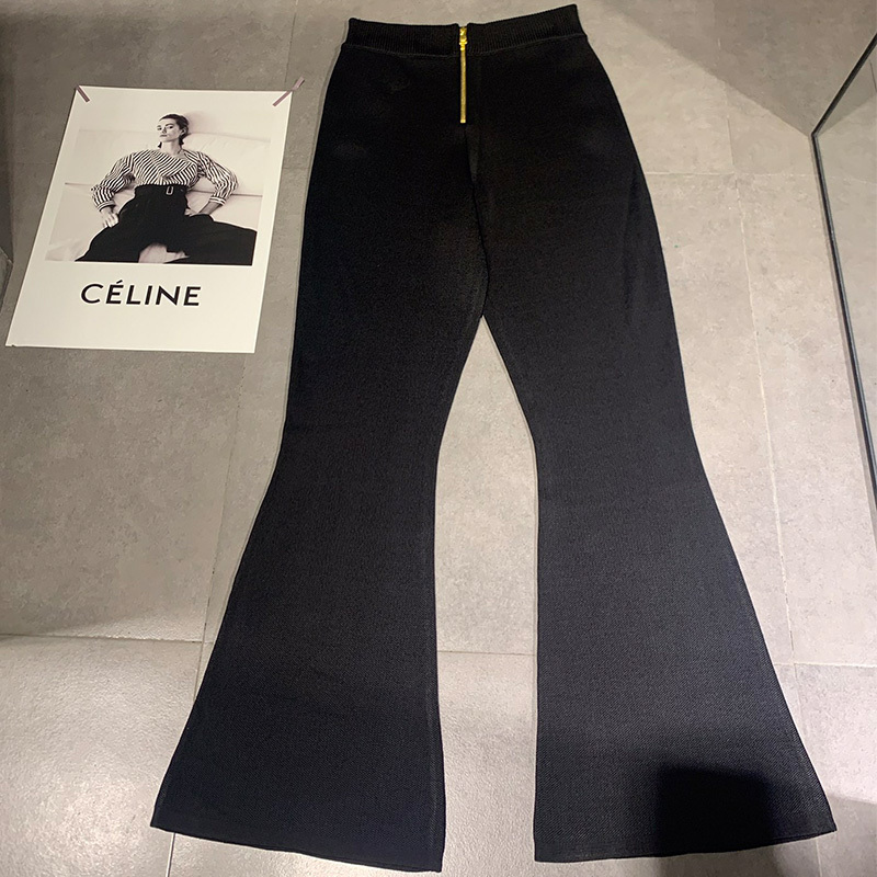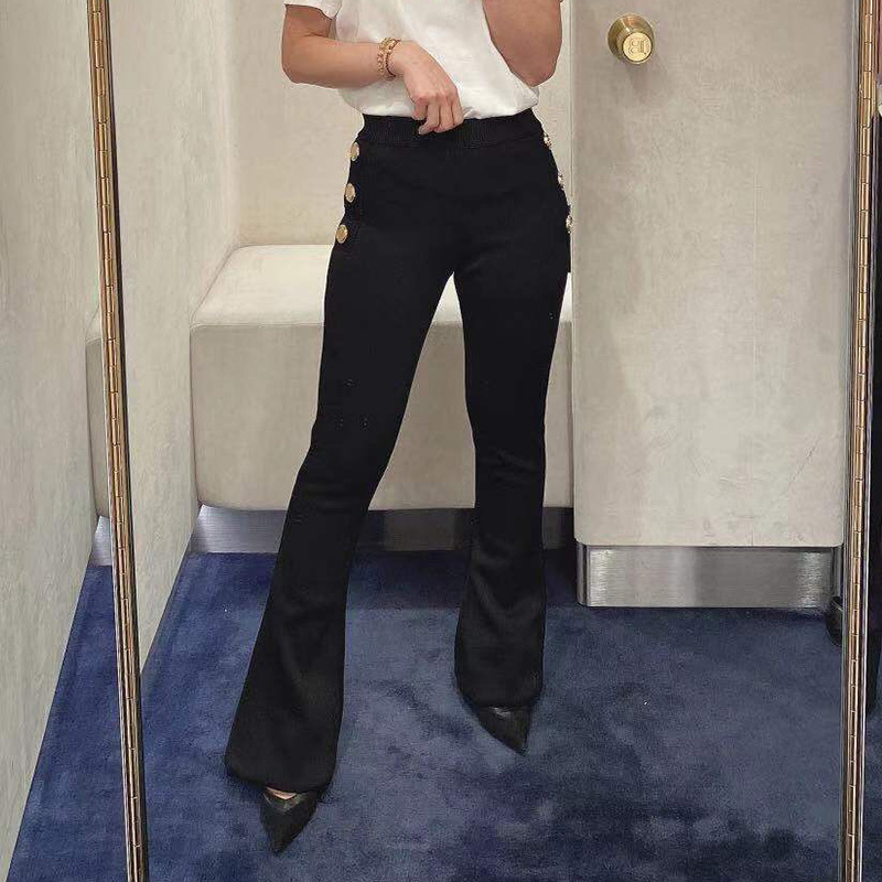 22 Spring Summer High Quality Black Double Breasted Flared Pants High Waist Gold Button Women Slim Comfortable Jeans Designer A0322