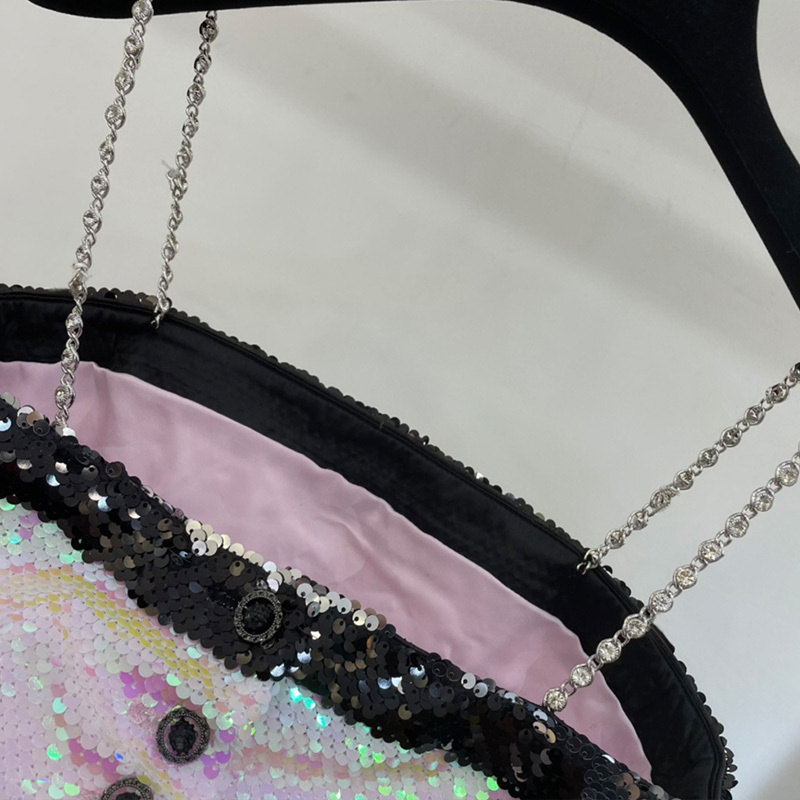 22 Summer Sequins Pink Mini Skirt Set Women Sexy Chain Buttons Wrapped Chest Camisole Top Fashion Show Pockets Hips A Line SkirtA0536