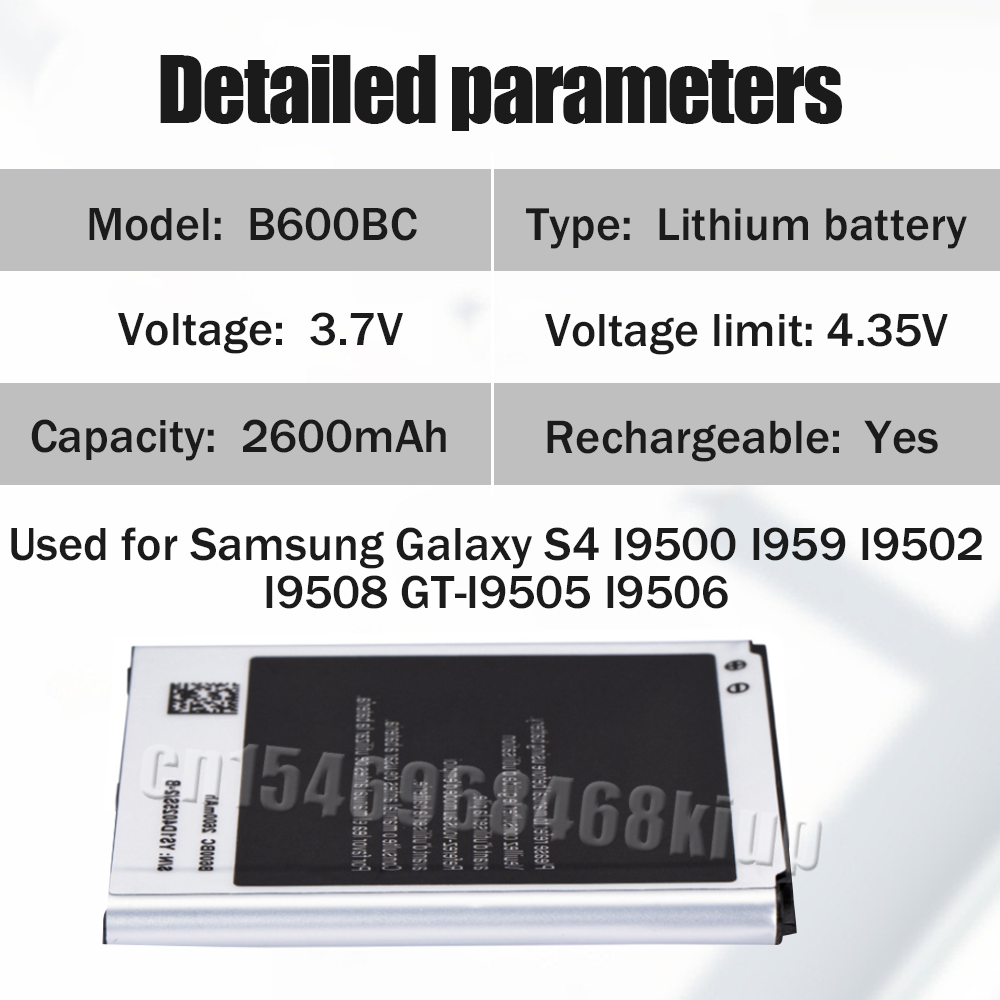 2600mAh B600BC B600BE B600BU Replacement Phone Battery For Samsung Galaxy S4 I9500 I9508 GT-I9505 I9506 I9502 Lithium Battery