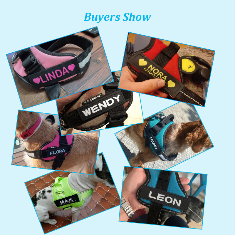 16x5cm(6.3x2.0in) size labels are suitable for the dog harness which size is L or bigger than L.