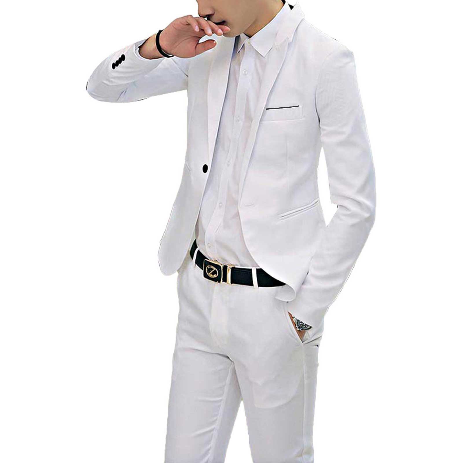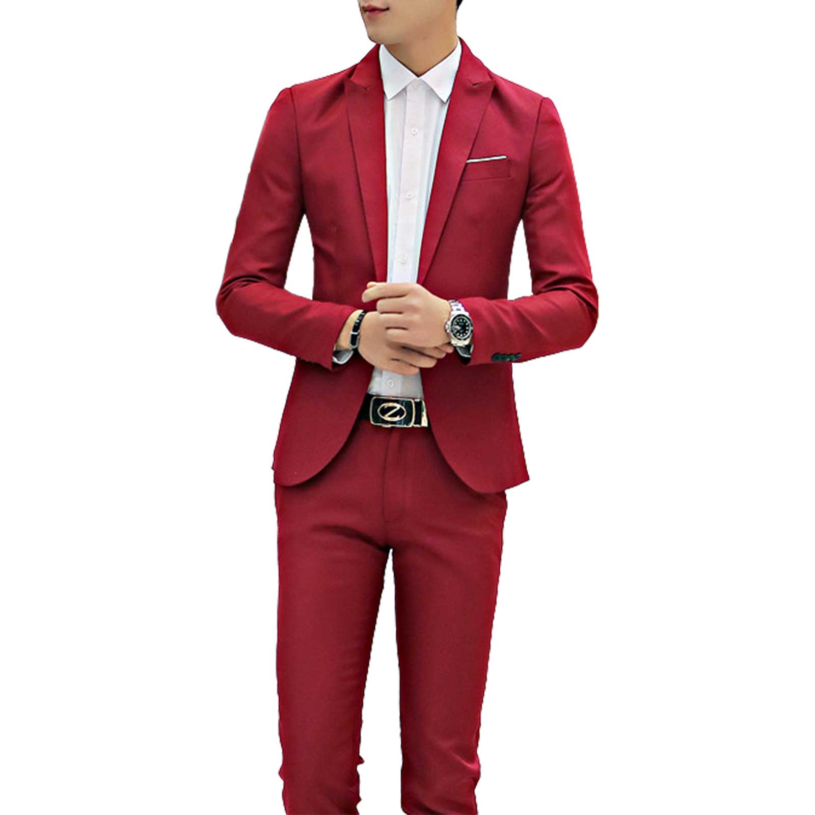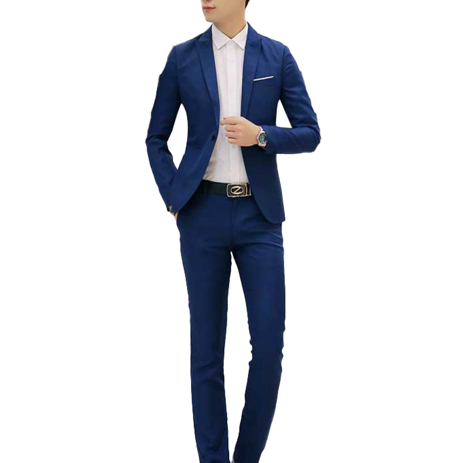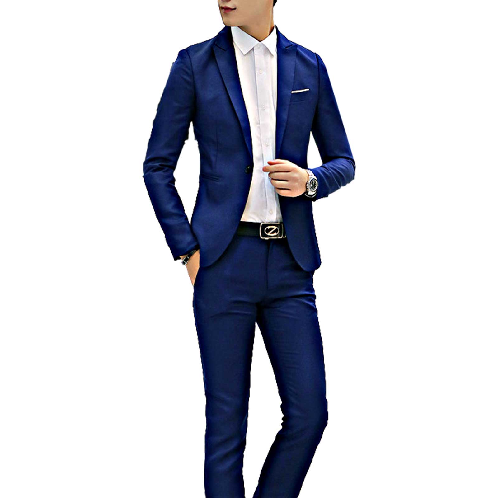 2Pcs Men Gentleman Suit One-Button Notch Flap Pockets Lapel Long Sleeve Jacket Blazer Long Pants Set for Office Meetings