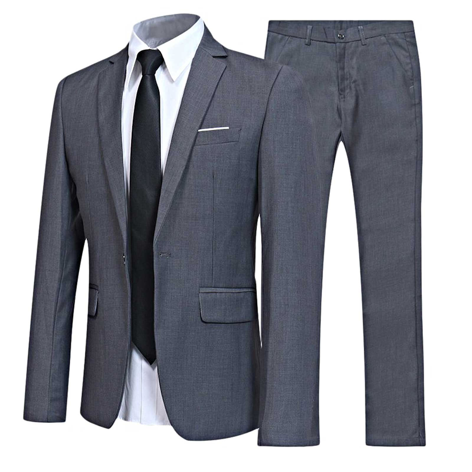 2Pcs Men Gentleman Suit One-Button Notch Flap Pockets Lapel Long Sleeve Jacket Blazer Long Pants Set for Office Meetings