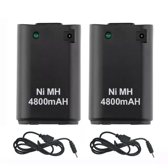 2Pcs x 4800mAh Battery Pack + 2 x Charger Cable for Xbox 360 Controller Battery Pack Xbox 360 Gamepads Replacement Bateria