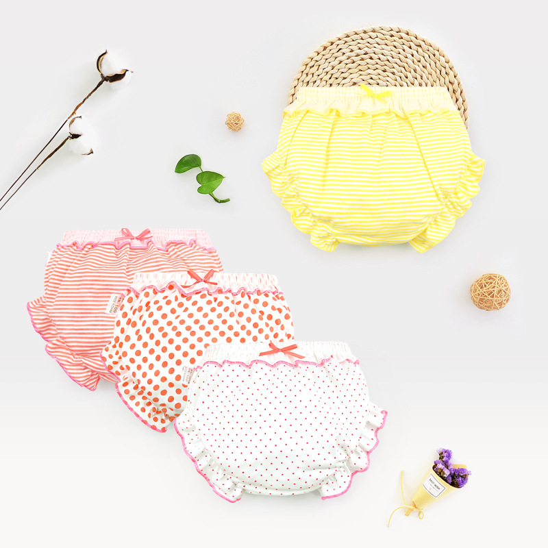 3 Piece/Lot Kids 100%Cotton Panties Girl Baby Infant Newborn Fashion Solid Cute Bow Striped Dots Underpants For Children Gift CN