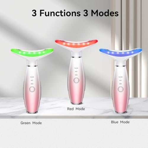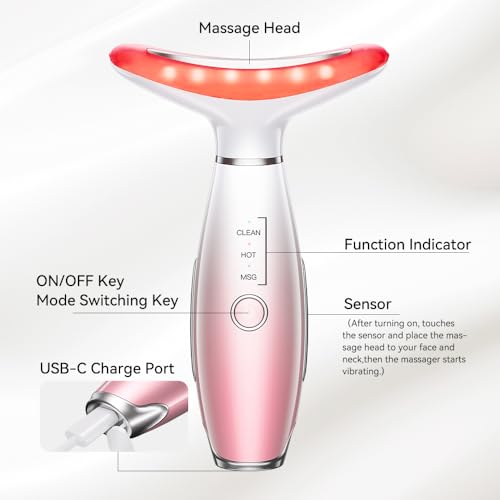 3 Color Face Massager, Face Sculpting Tool for Double Chin, Facial Massager, Face Neck Massager with Vibration and Heat, Beauty Device at Home (Pink)