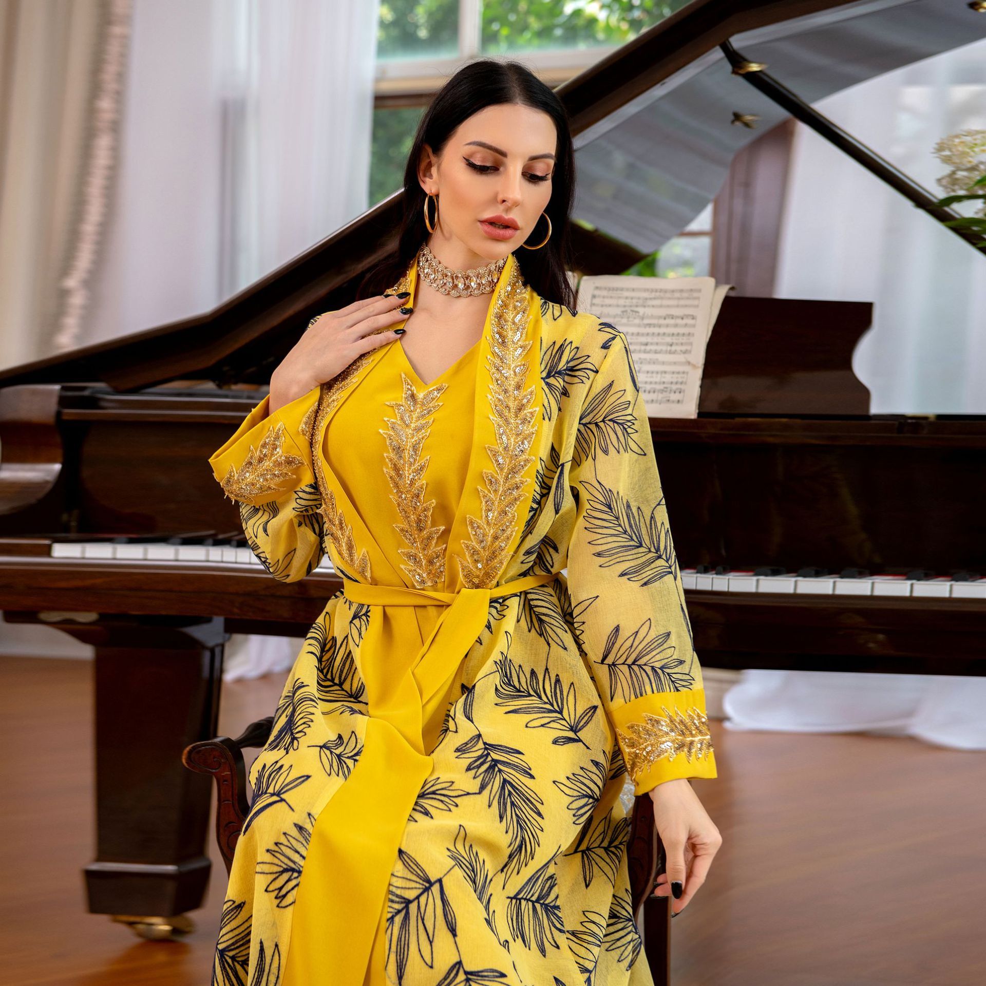3Pcs Elegant Jalabiya Sequins Arabic Dress Embroidered Women Arabian Evening Party Wear Moroccan Kaftan Muslim Ramadan Cozy Robe