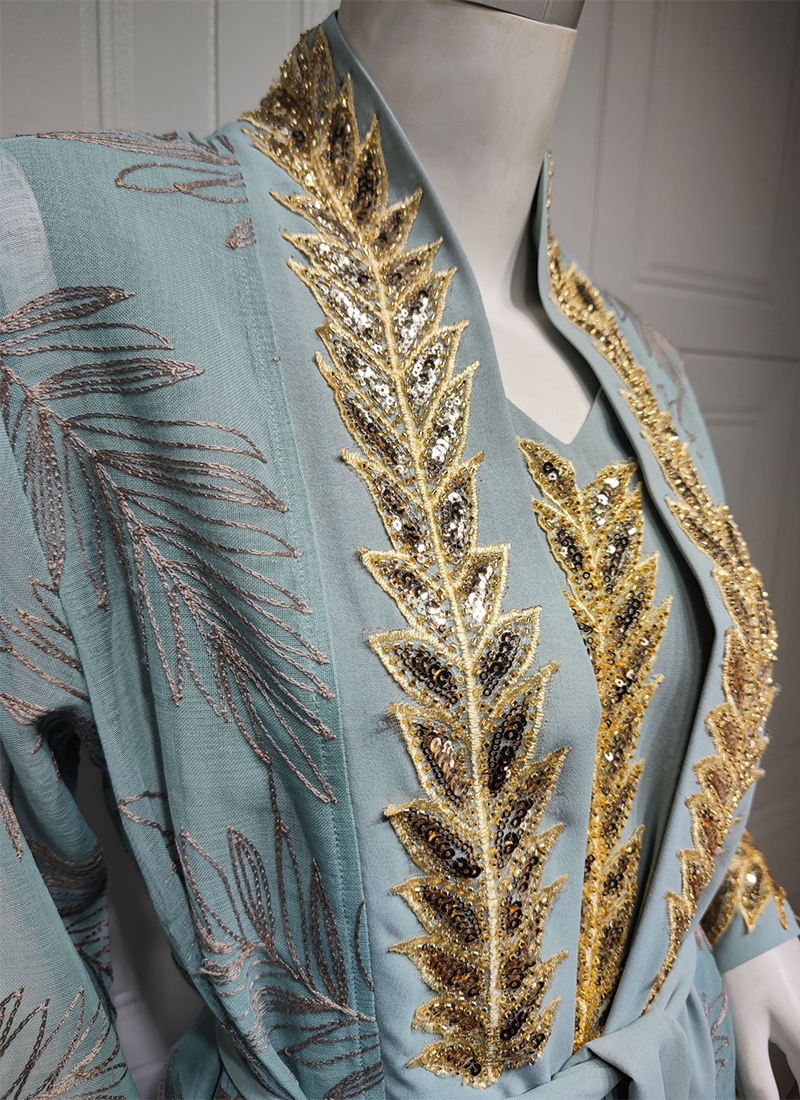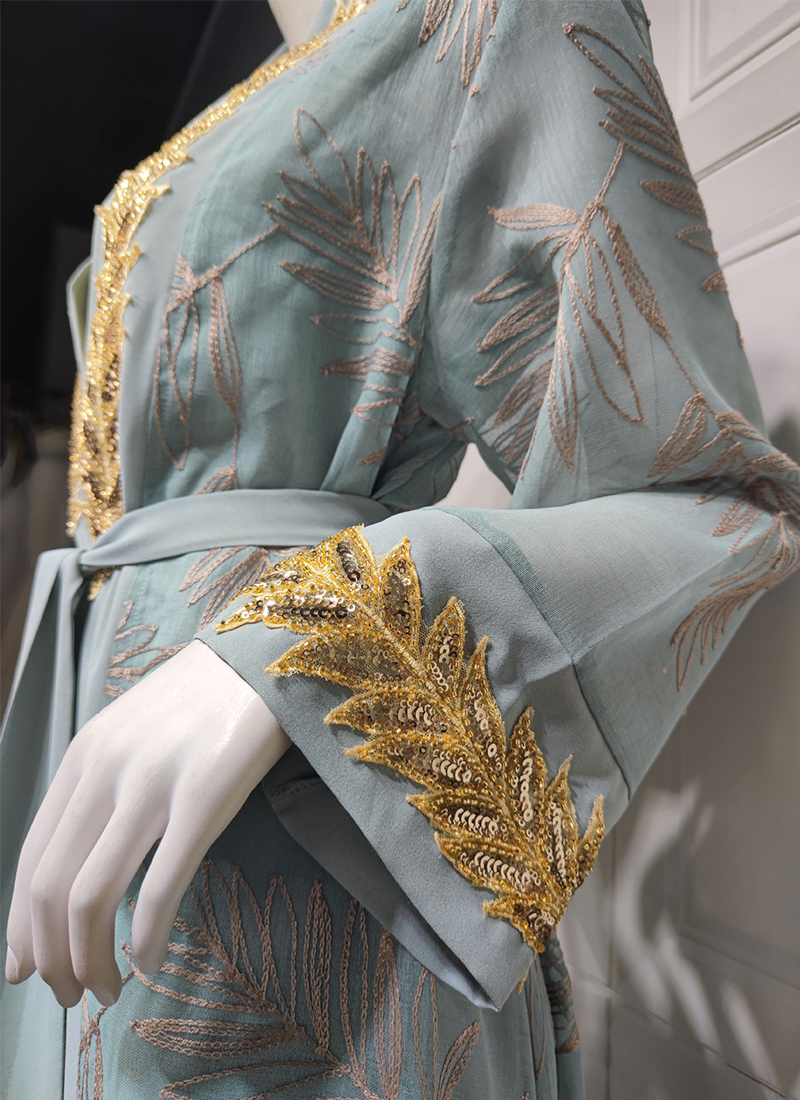 3Pcs Elegant Jalabiya Sequins Arabic Dress Embroidered Women Arabian Evening Party Wear Moroccan Kaftan Muslim Ramadan Cozy Robe