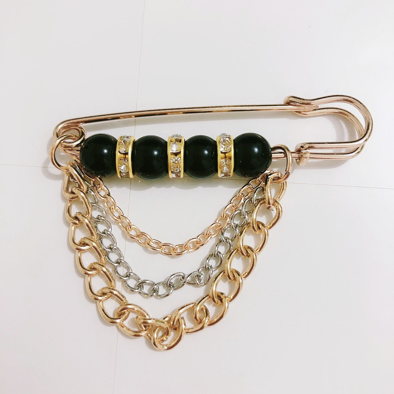 Pearls Crystal Gold Brooch : Waist Tighting Clap