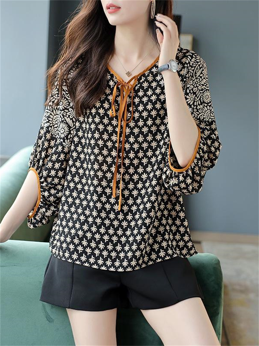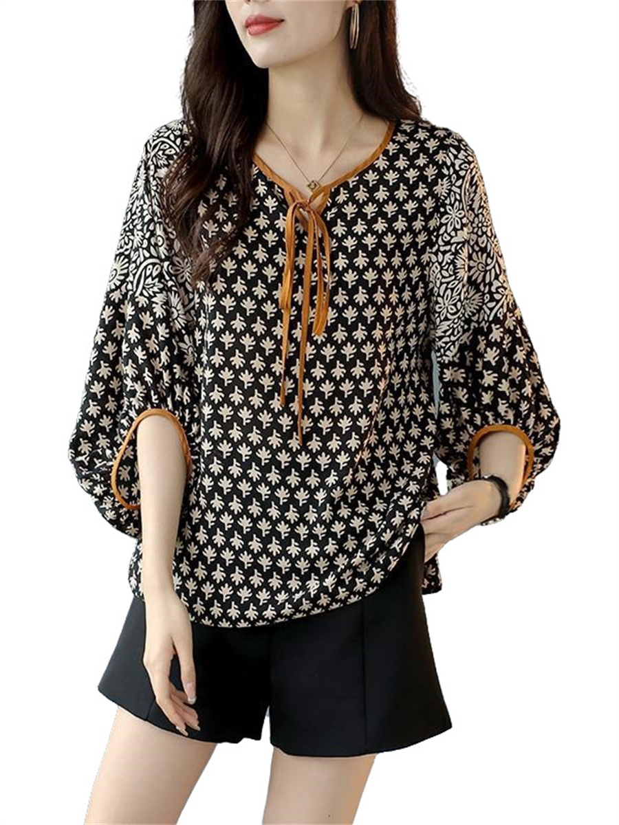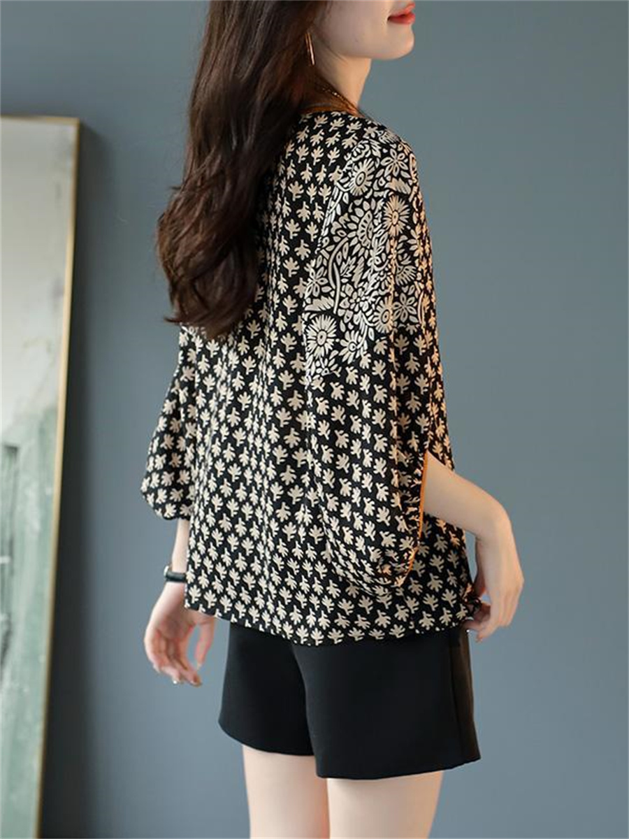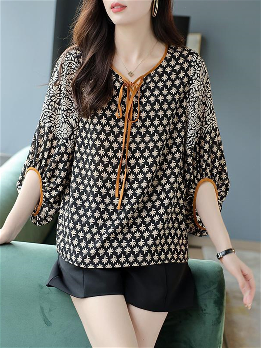 4XL Loose Women Spring Summer Blouses Shirts Lady Casual Half Sleeve V-Neck Collar Flower Printing Blusas Tops TT2241