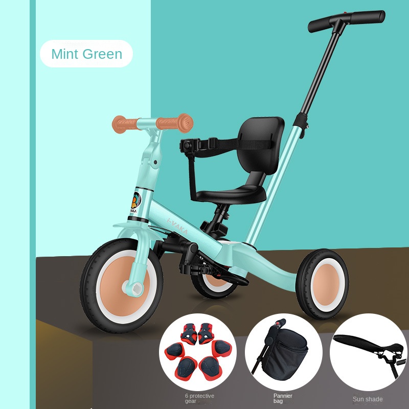 ✔️ Option name (D) : 1 Pc x children's tricycle + 1 Pc x Backrest + 1 Pc x push handle + 1 Pc x storage bag + 6 Pcs x Protective gear