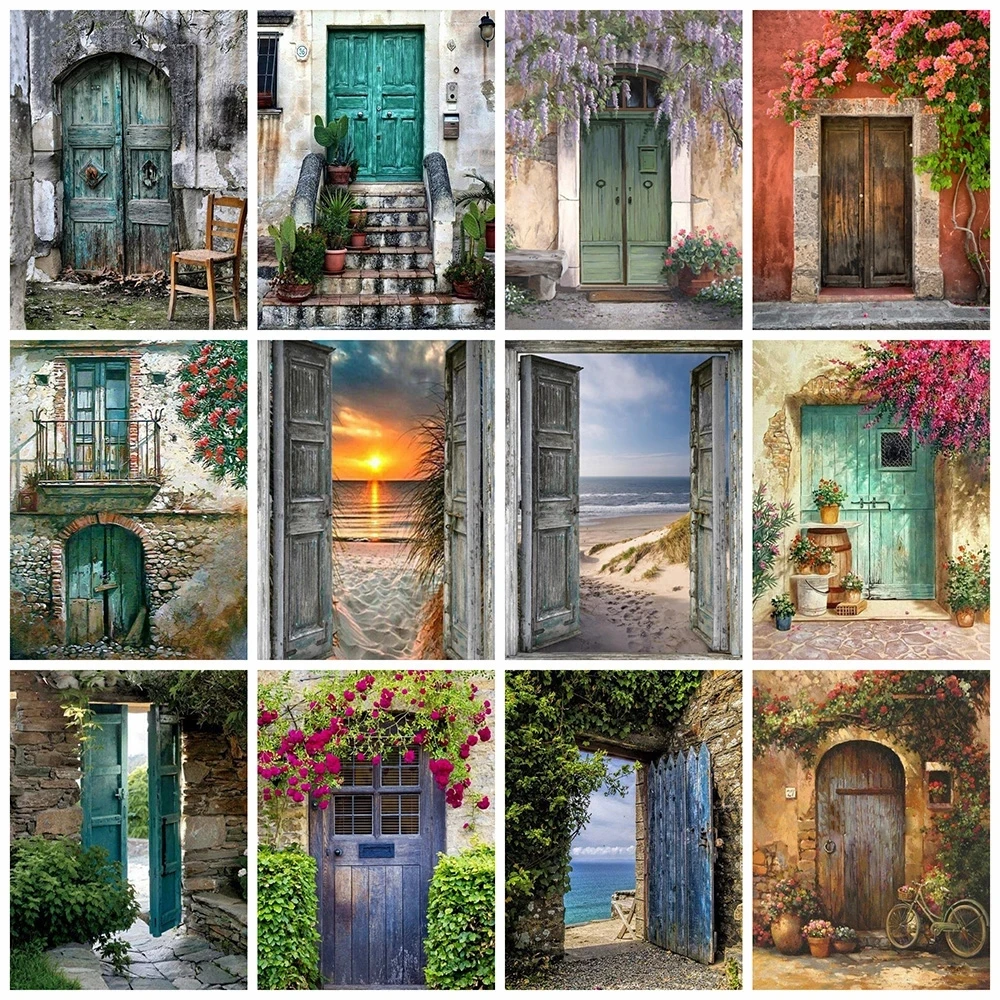 5D Diy Seaside Scenery Diamond Painting Various Door Patterns Full Diamond Cross...