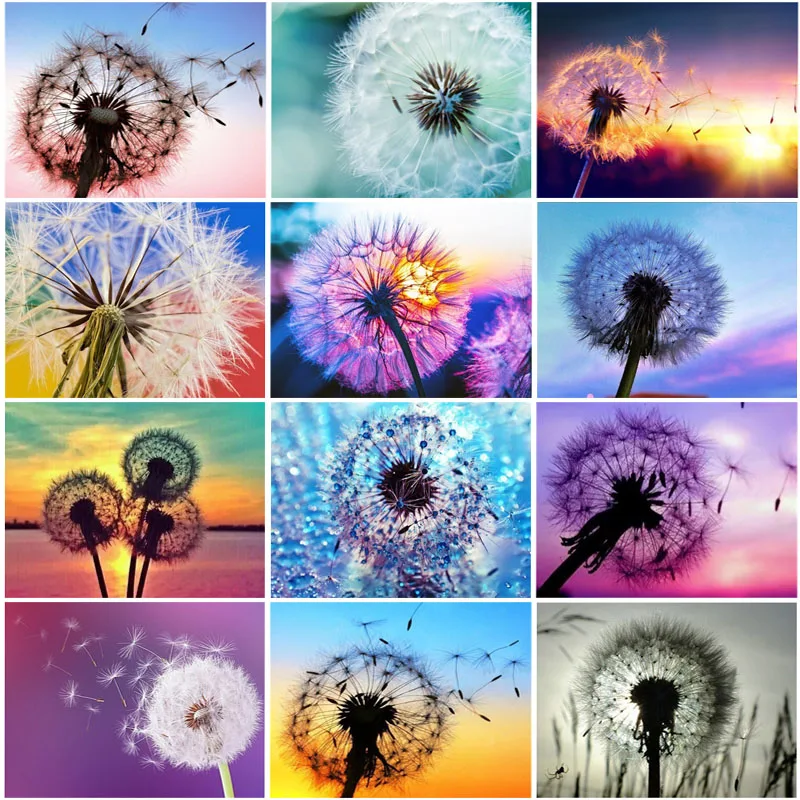 5D Diy Color Dandelion Diamond Painting Handmade Rhinestone Embroidery Diamond M...