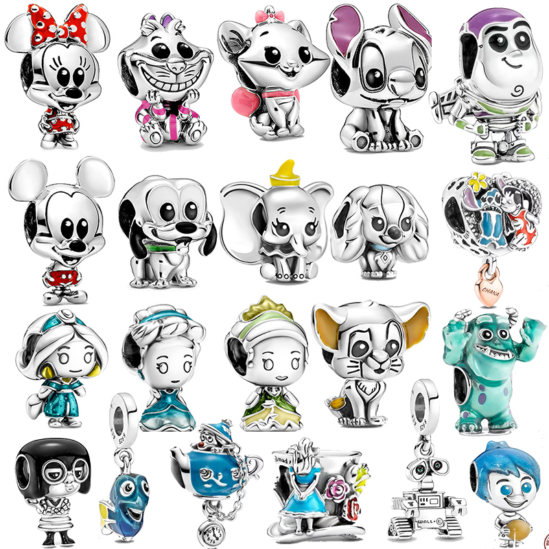 925 Sterling Silver Disney Charm Beads for Original Pandora Bracelets. Women's Birthday Boutique Jewelry