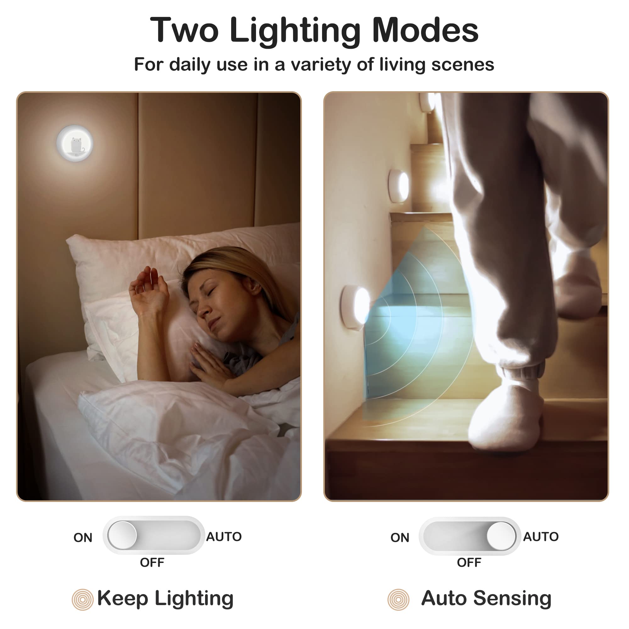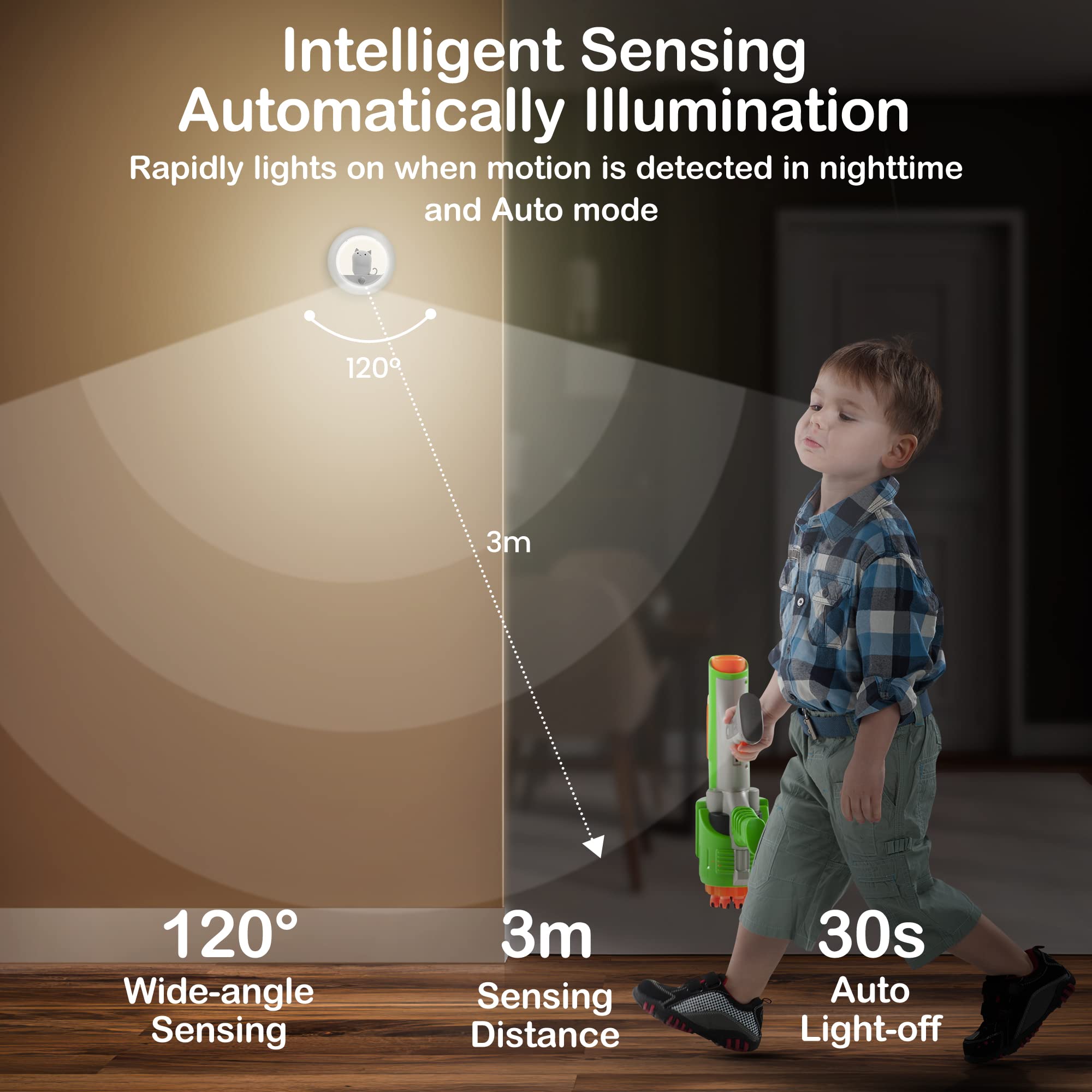 ALACRIS Motion Sensor Night Light Rechargeable LED Night Light Adjustable Brightness Natural Soft Light for Bedrooms Bathroom