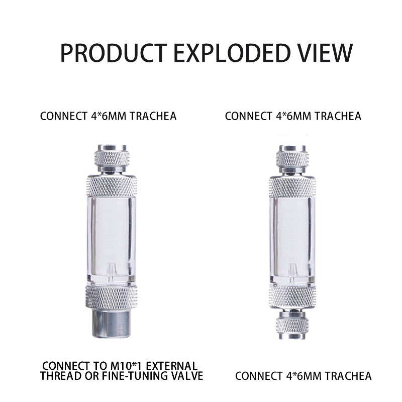 Add 4/5 water in the bubble counter and then tighten the top cover. Plug the CO2 pipe and then tighten the trachea fastening nut.