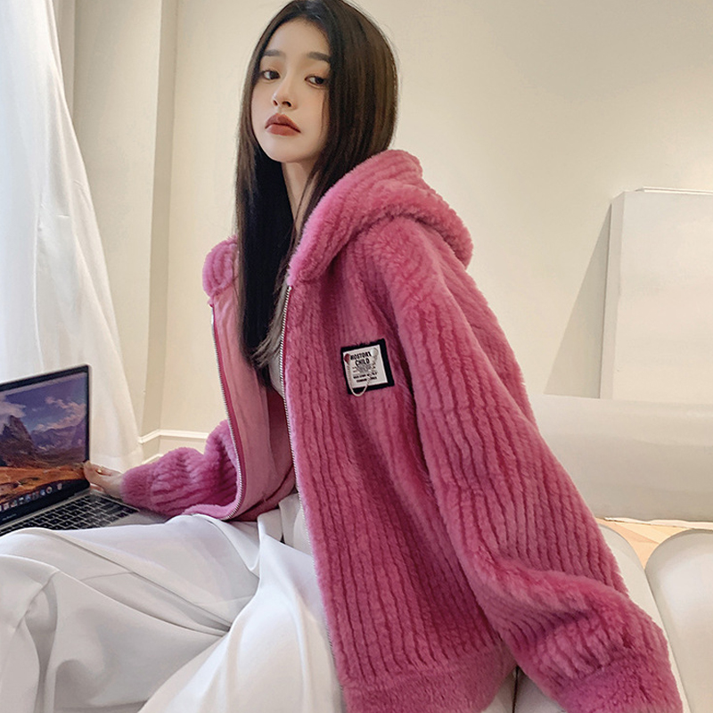Autumn and Winter All Wool Stand Collar Hooded Fur Coat One Sheep Sheared Wool Lamb Jacket Women Double-faced Fur