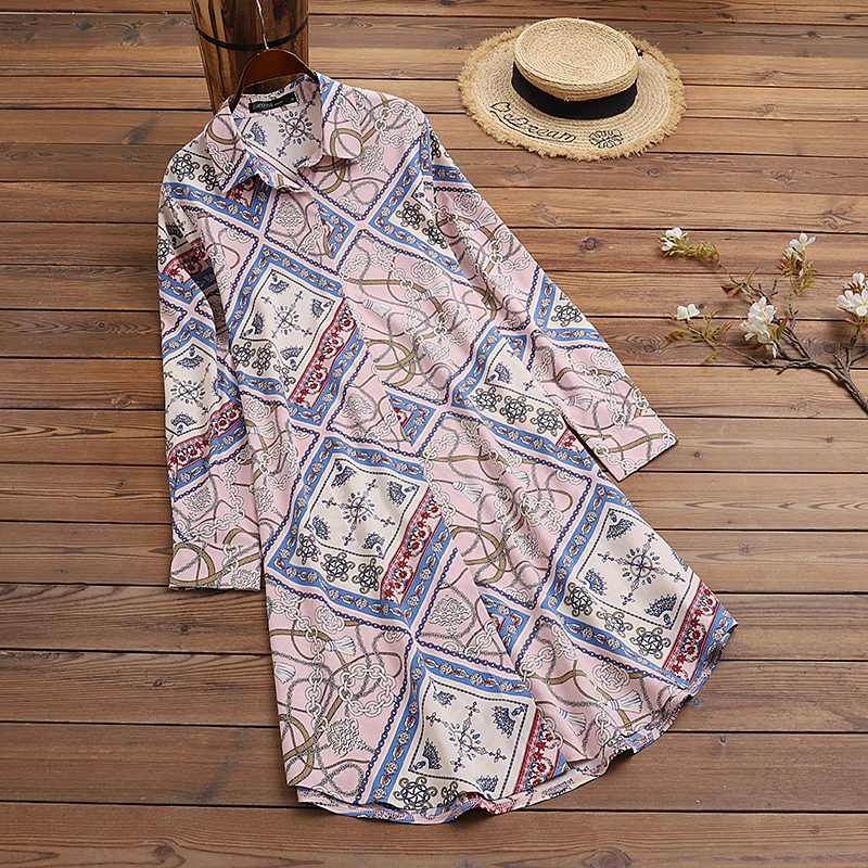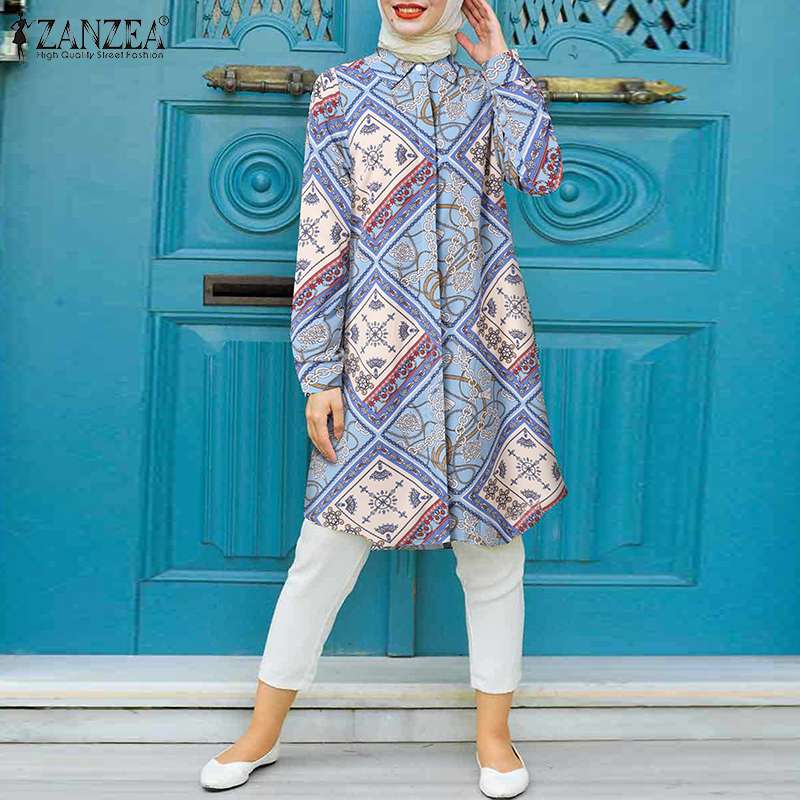 Bohemian Casual Loose Elegant Tops Shirts ZANZEA Muslim Islamic Women Full Sleeved Lapel Vintage Blouse Elegant Printed Button