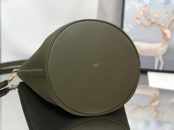 Celine Bucket 16 Bag In Dark Olive Grained Calfskin