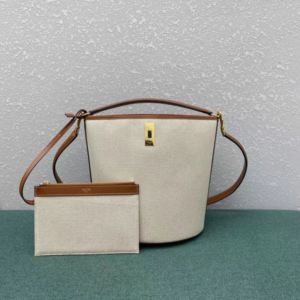 Aside from the now-iconic Celine 16 turnlock, the Bucket bares little resemblance to the original structured shape, allowing this new silhouette to speak to consumers who may not be original fans of the 16 line. Combining the elegance of calfskin and the modernity of textile, Celine’s 16 bucket bag is a resolutely contemporary creation.