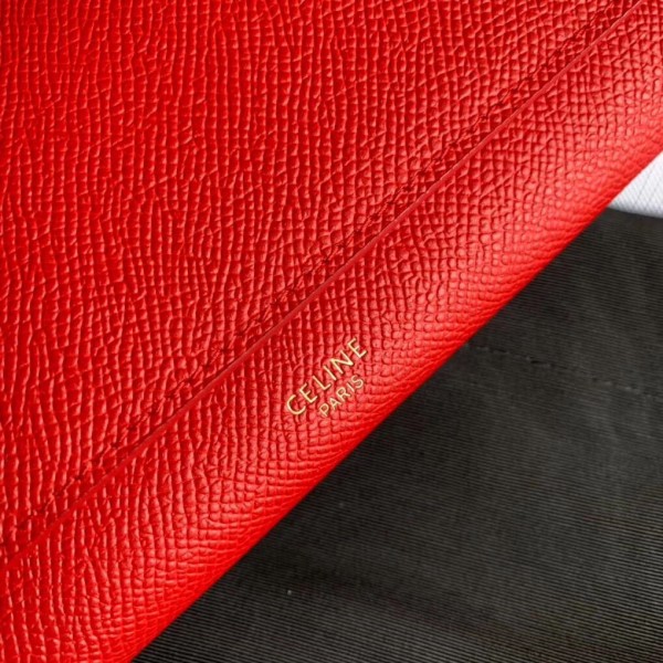 Celine Large Flap Wallet In Red Grained Calfskin