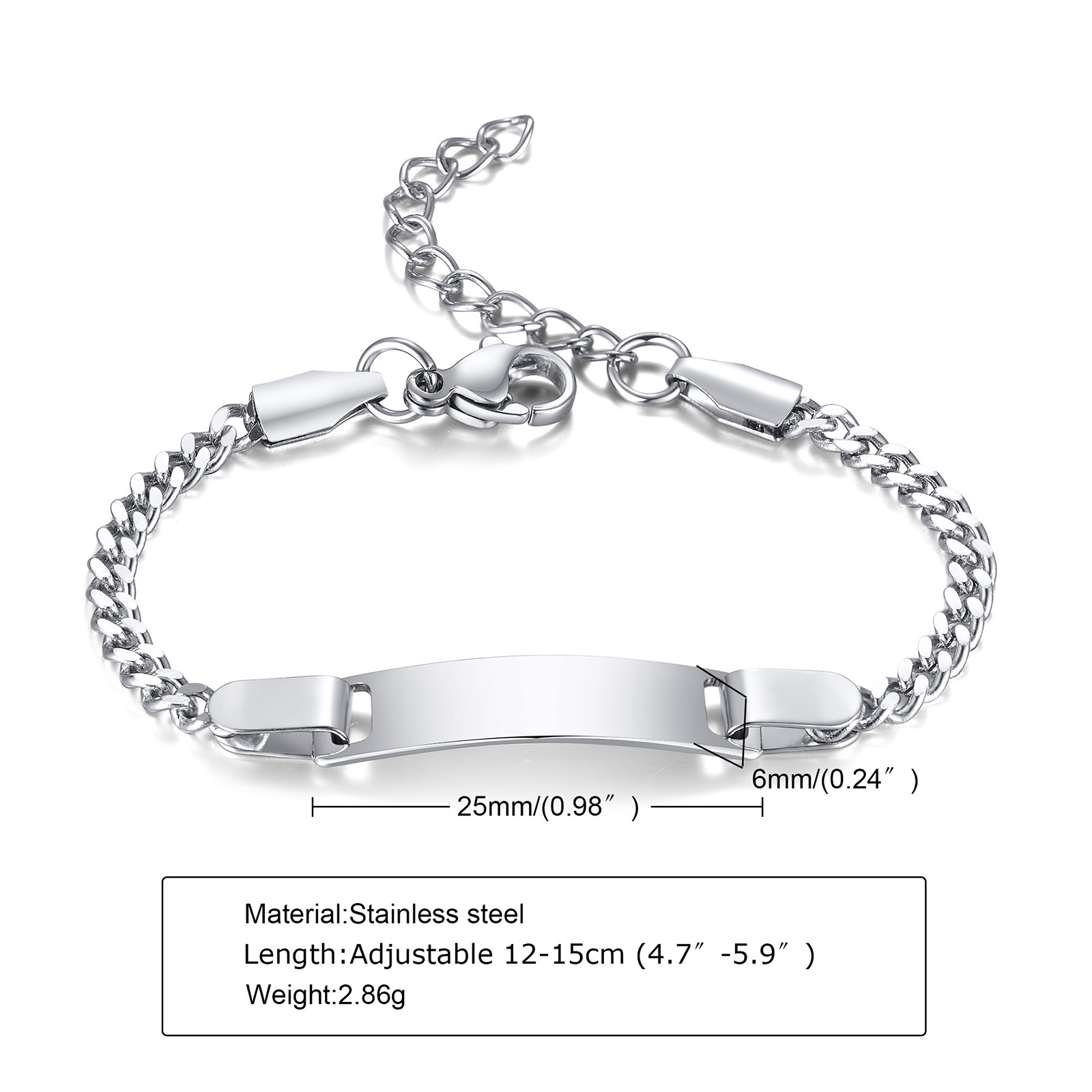 This is personalized stainless steel bracelet, we you can laser name , date , logo, picture on bracelet.