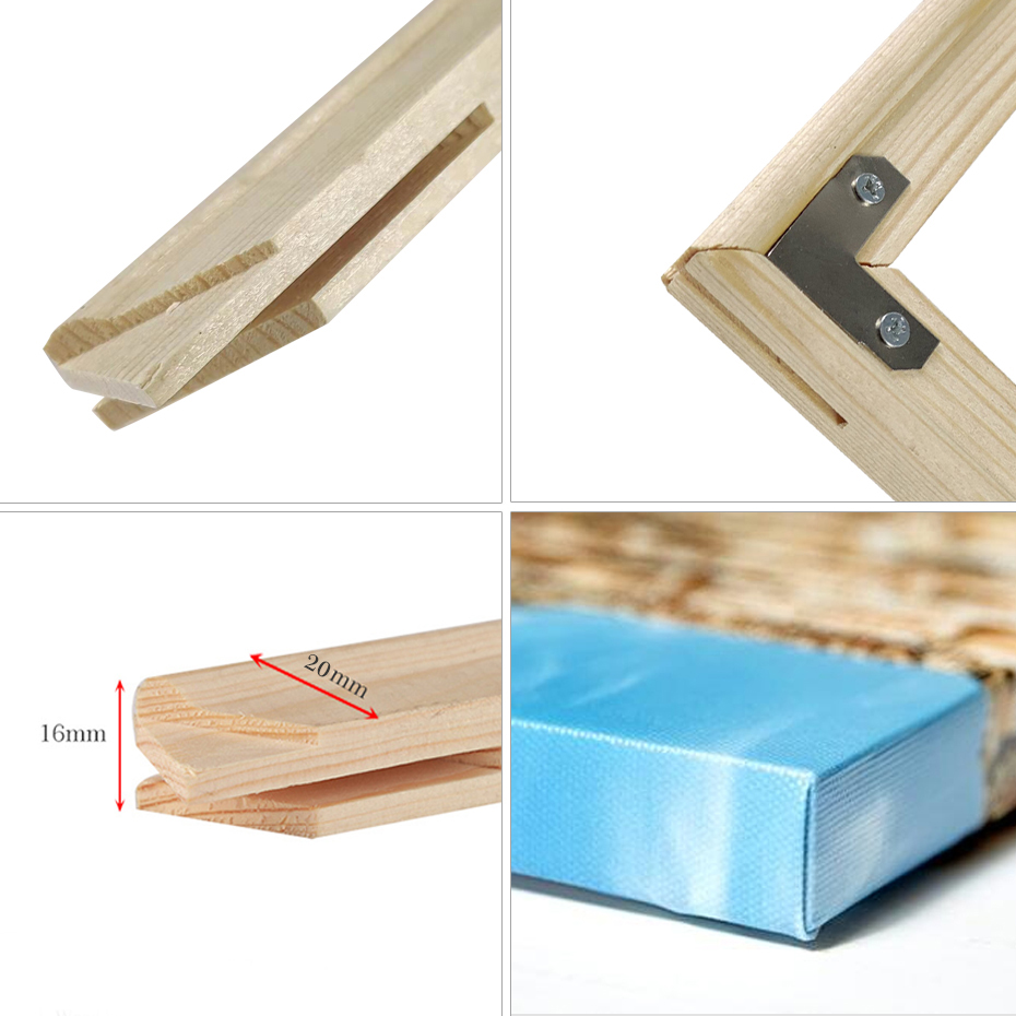 • All the pine wood is imported from Russia East, and we selected the wood without knots carefully, then kiln-dried to moisture content below 8% to make sure that your stretched picture stays tightly in place.