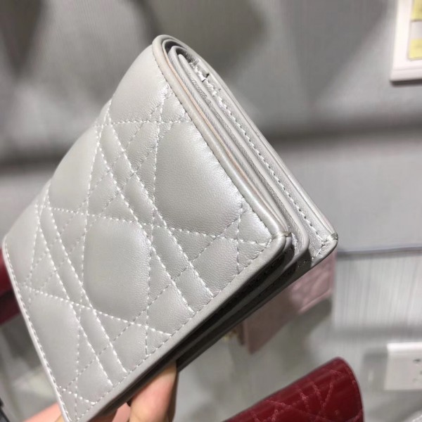 Dior Mini Lady Dior Wallet In Opal Grey Pearly Lambskin