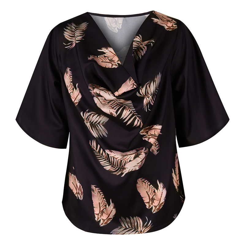 Elegant Print Womens Tops And Blouses Casual Loose V Neck Three Quarter Sleeve Female Tunic Feather Butterfly Blusas Shirt Girl
