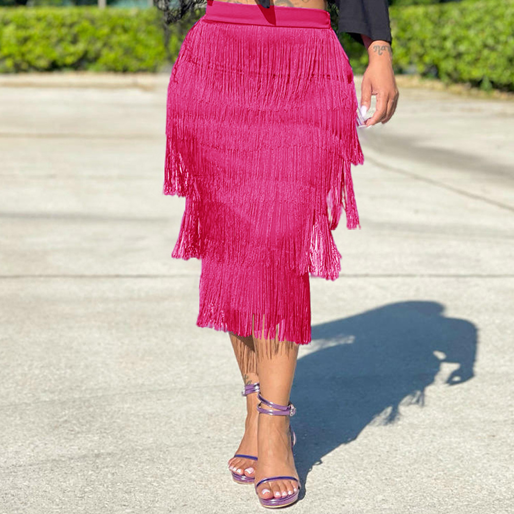 Elegant Tassel Fringe Bodycon Pencil Skirts Womens High Waist Stretchy Sheath Midi Summer Ladies Jupe Party Rock Saia Falda