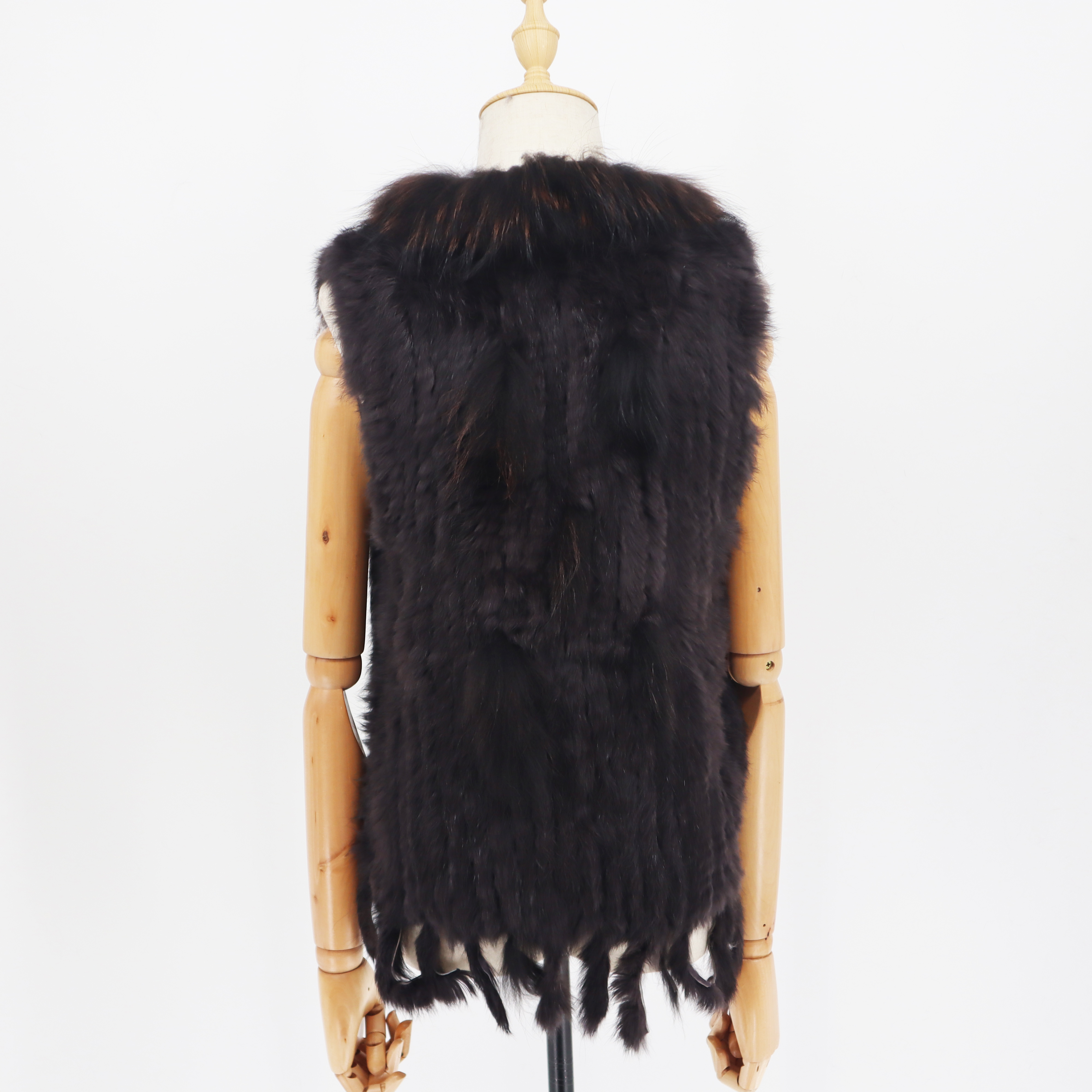 Factory Customized Real Rabbit Fur Tassel Vest High-end Women Knitted Sleeveless Vests Natural Raccoon Fur Jacket