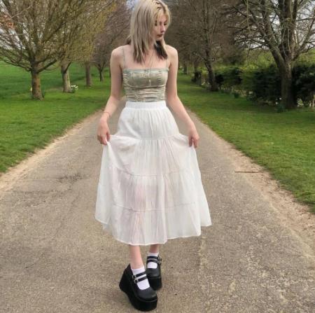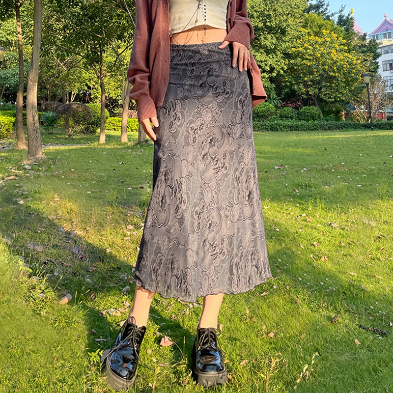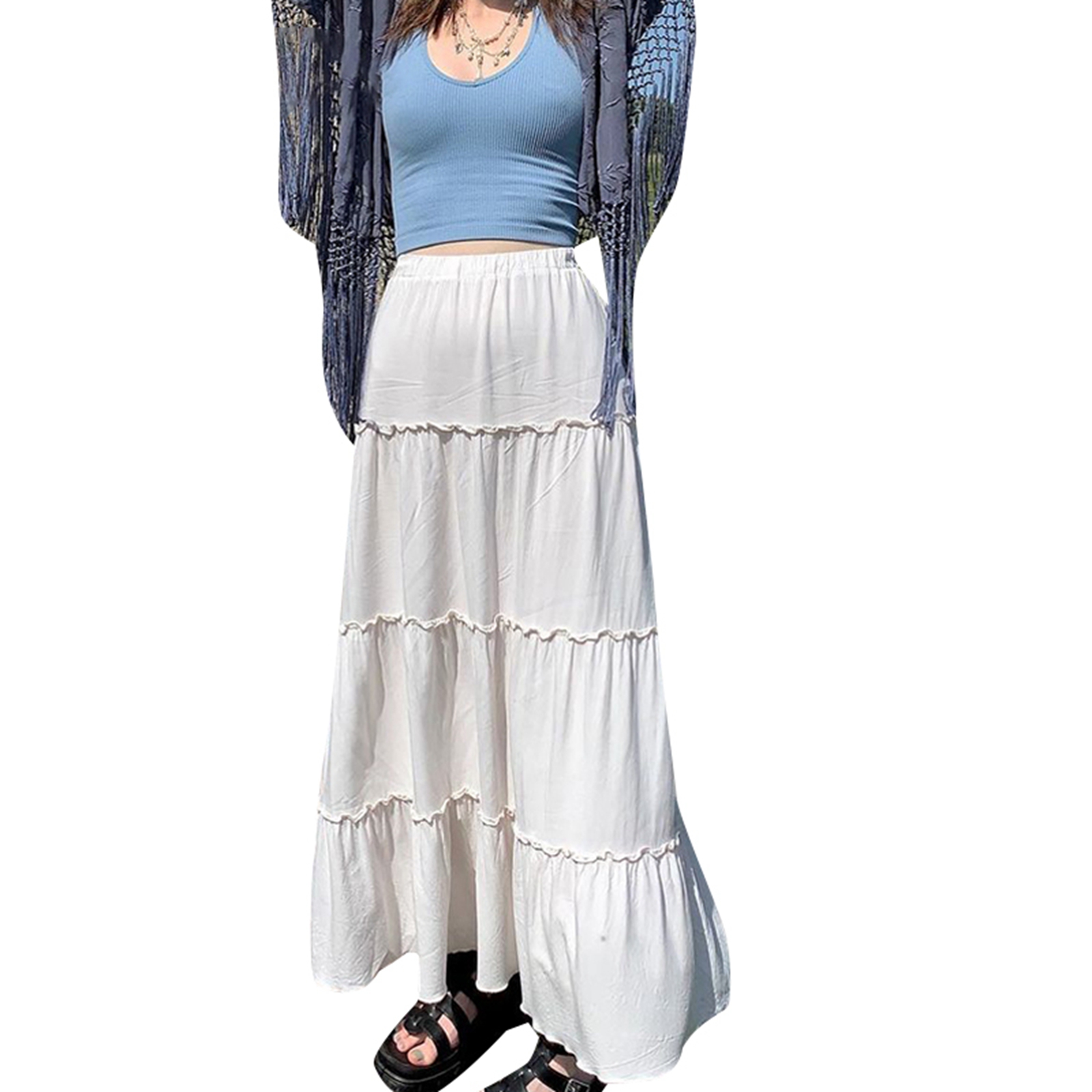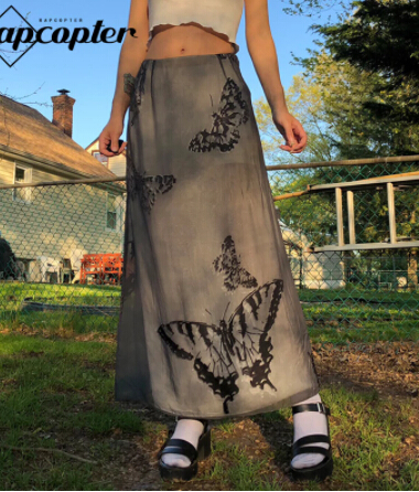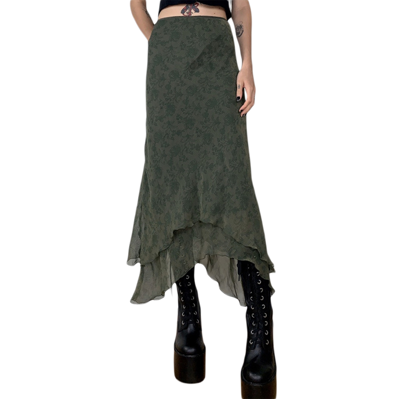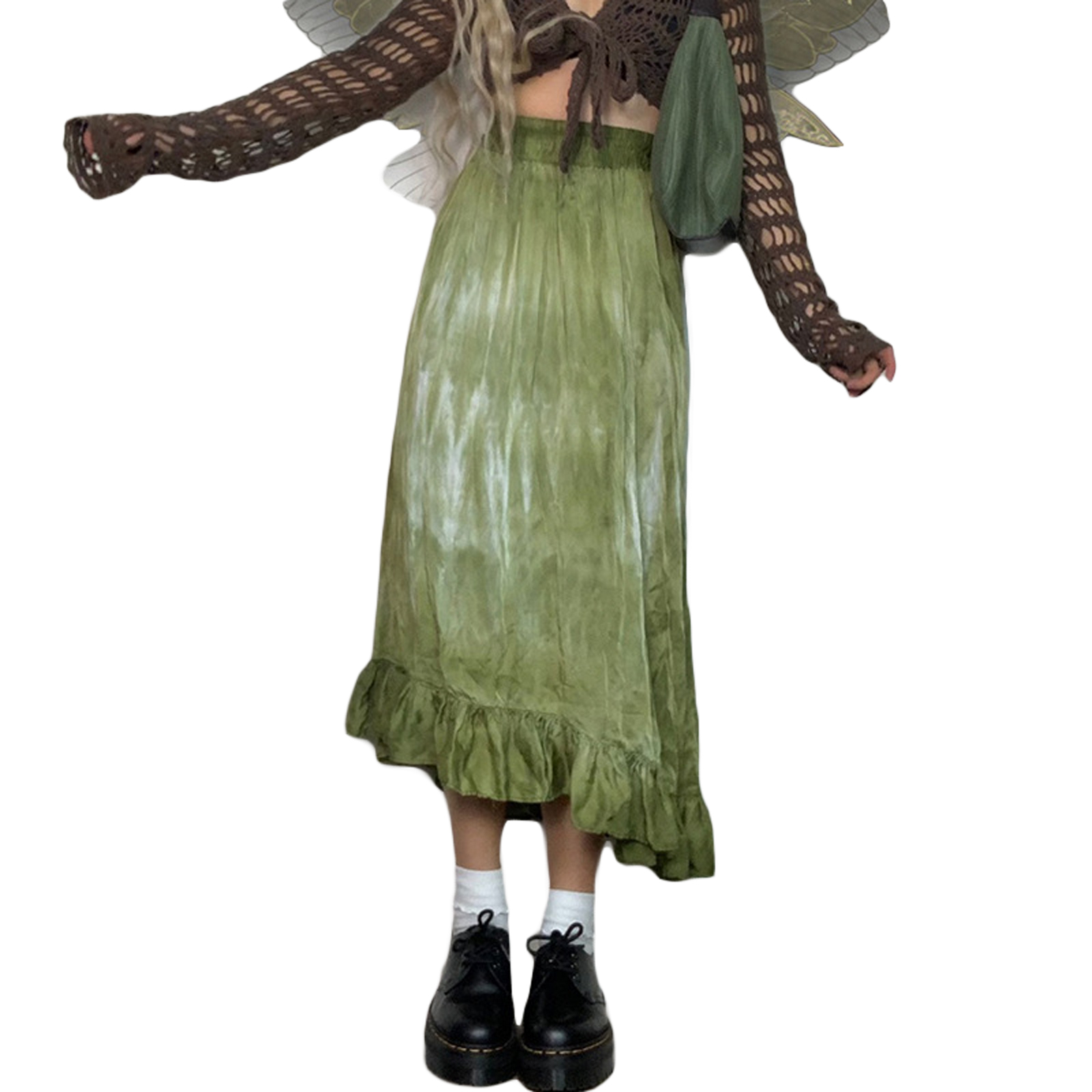 Fairy Grunge Kawaii Midi Skirt Aesthetic Retro Frills High Waist Straight Skirts Women Vintage Harajuku Streetwear