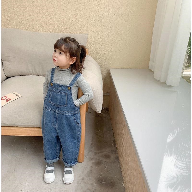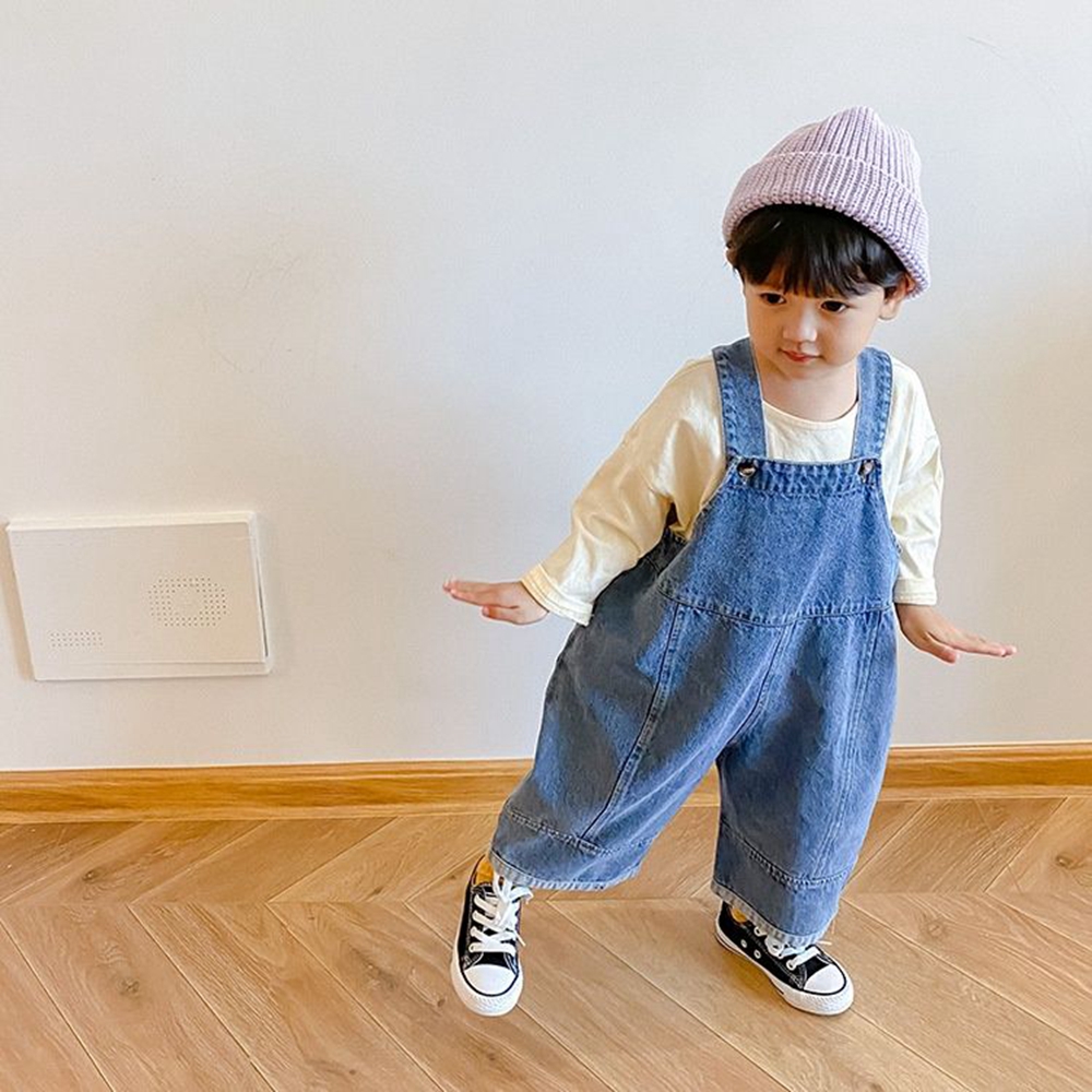 Fall Summer Denim Baby Girl Boy Overalls Solid Jeans Jumpsuit Pocket Children Casual Loose Rompers Blue Kids Overalls Outfits