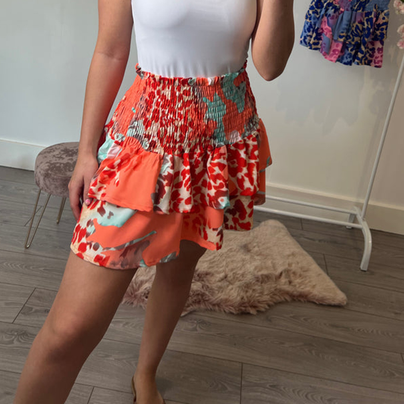 Fandy Lokar Elastic Waist Leopard Printed Skirts Women Ruffle Skirt Women Elegant Mini Cake Skirts Female Ladies