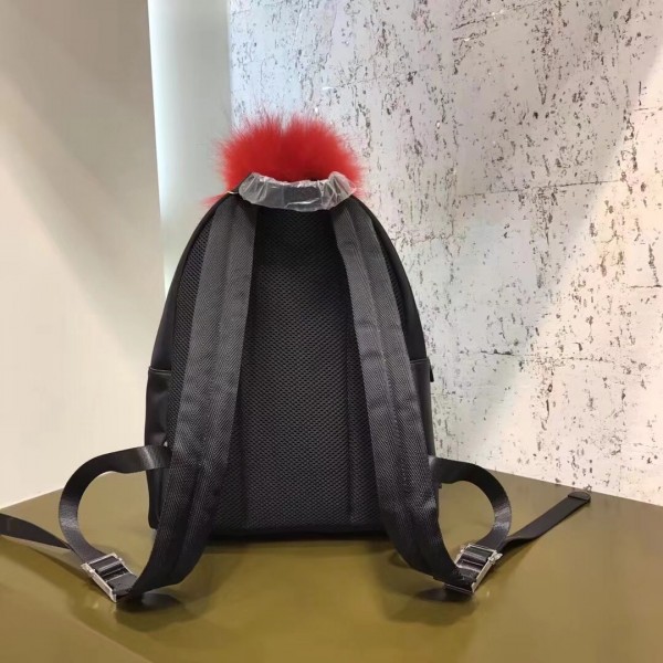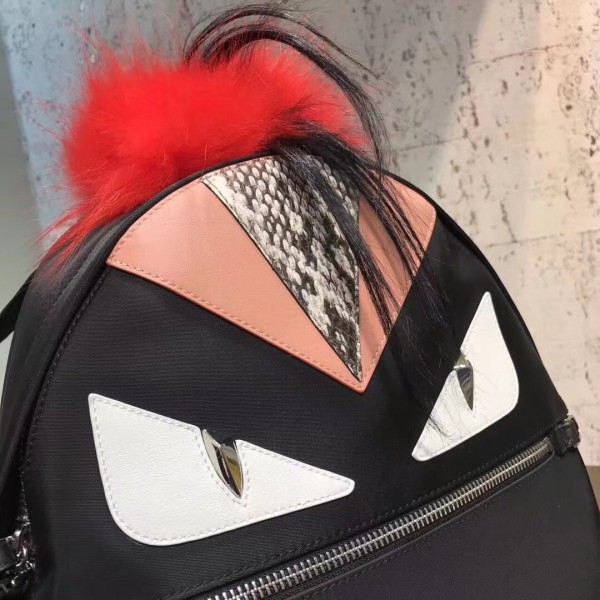 Fendi Black Bag Bugs Eyes Fox Fur Backpack