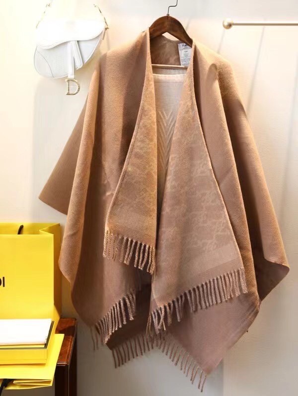 With its generous dimensions and cozy cashmere and wool, the Karl Poncho makes a perfect accessory for wintry days. House devotees will appreciate the new, one side is customized with an FF Karligraphy motif and the other is in a plain color. Long tonal fringe details complete its timeless and romantic design.