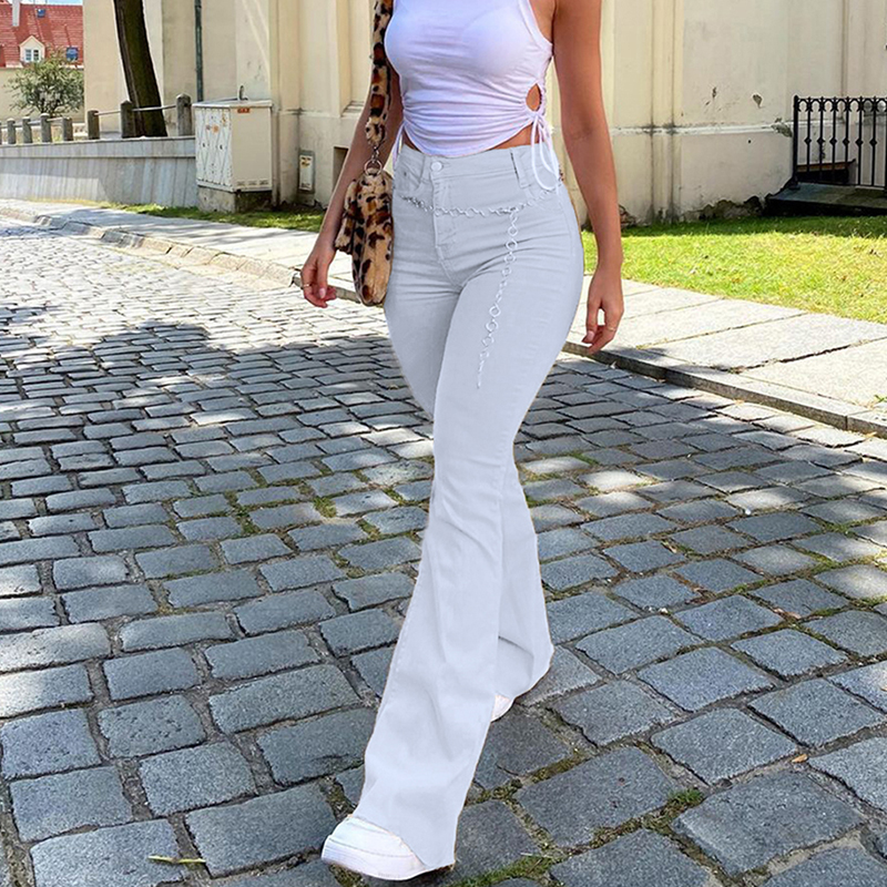 Flared Jeans Woman High Waist Beige White Pants For Women Clothing Jean Flared Pants Women Y2k Denim Trousers Woman Clothes Mom