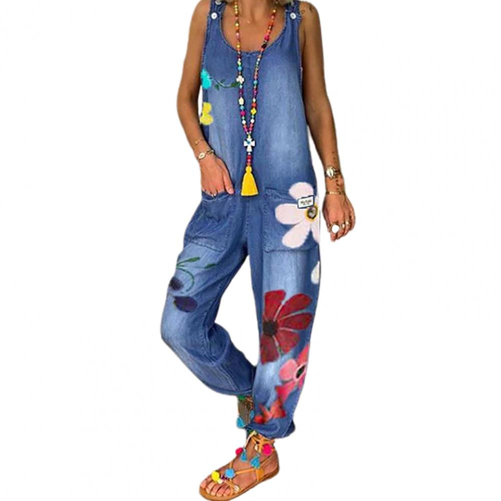 Floral Print Women Denim Jumpsuits Women Basic Overalls for Women Loose BF Chic High Street Wide Leg Denim Pants Jeans Overalls