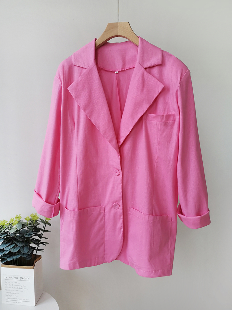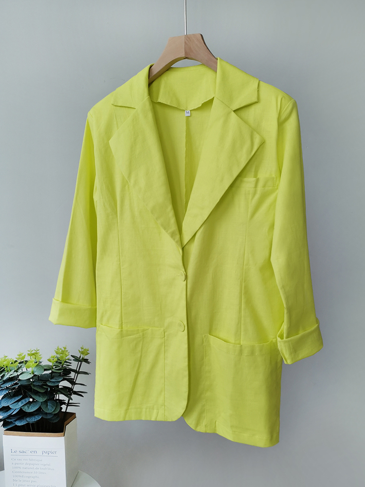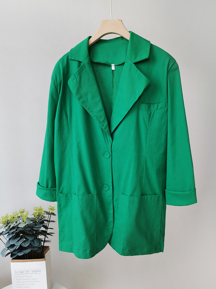 Green Cotton Linen Women's Oversize Jacket Candy Colors Long Jackets Suits Blazer for Women Elegant Stylish Office Tops Coat
