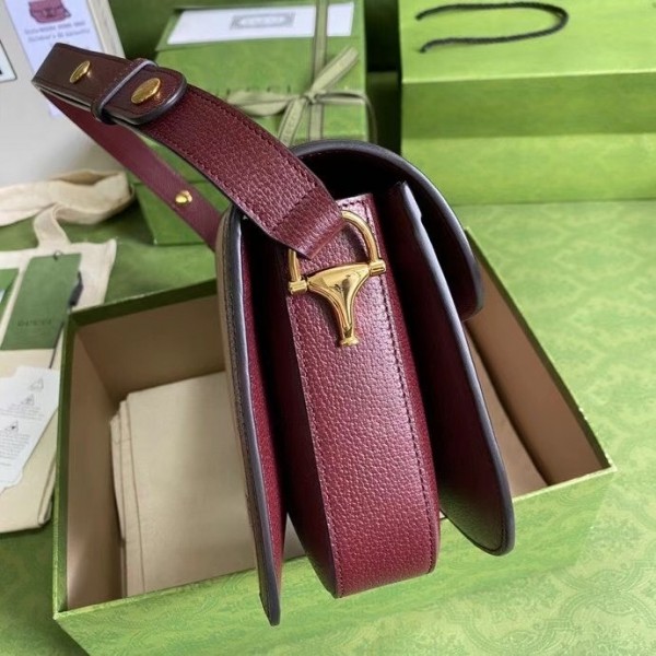 Gucci 1955 Horsebit Small Bag In Burgundy GG Canvas