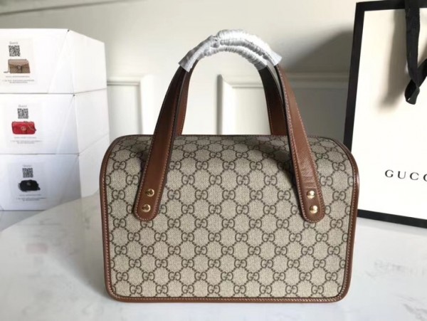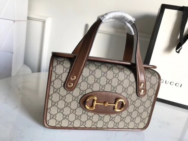 The top handle Boston bag is introduced within the Gucci Horsebit 1955 collection for Pre-Fall 2020 in the House’s GG monogram trimmed with brown leather. Inspired by archival designs, the line unifies the original details first introduced over six decades ago with a modern spirit, highlighting the Horsebit. Part of Gucci’s genetic code, the double ring and bar design has been established as one of the most distinctive elements among the House symbols borrowed from the equestrian world.