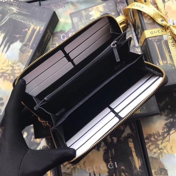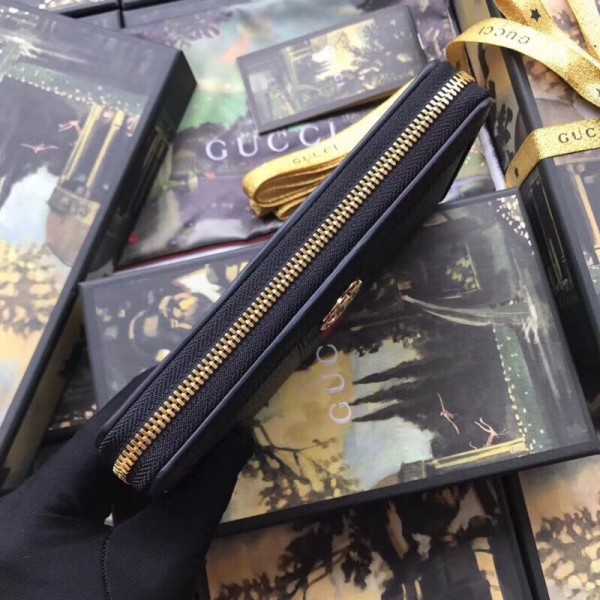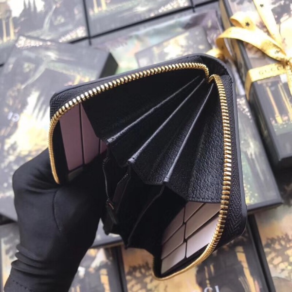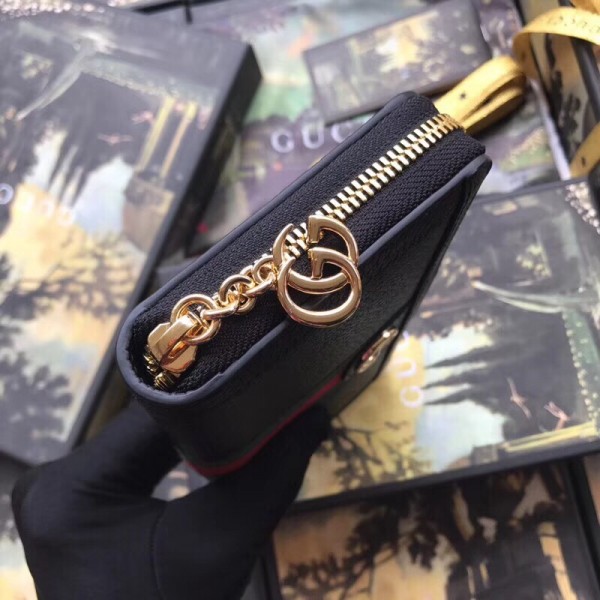 The Ophidia universe combines retro inspired details with emblematic House codes, referenced atop this wallet by the pairing of the classic green and red House Web with the Double G—an archival detail from the ’70s. Crafted from textured leather, this accessory is completed by a zip around closure.