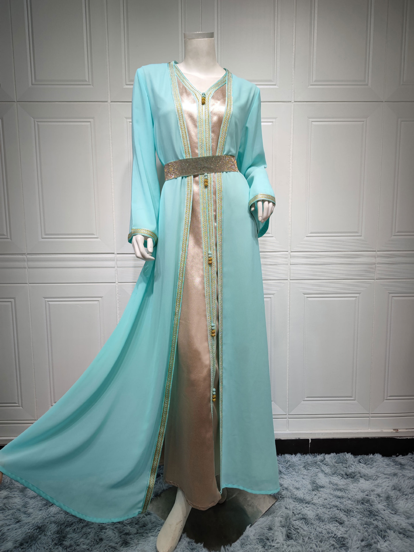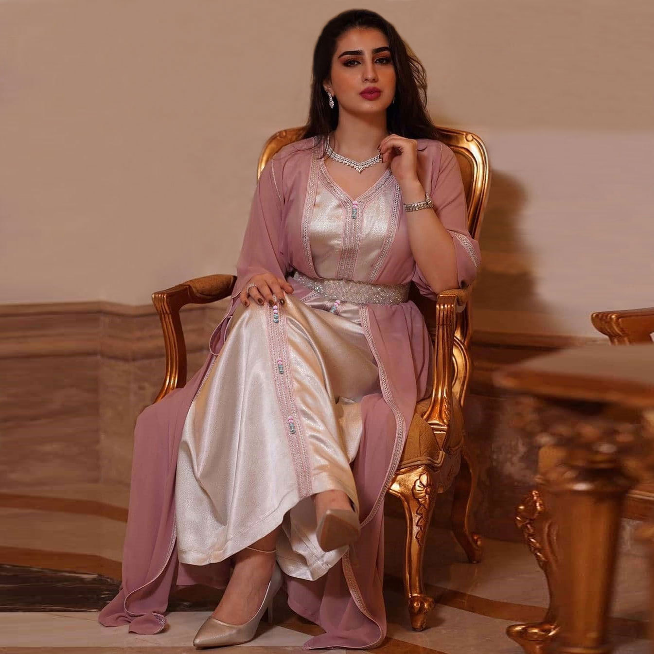 High Class Sequins Ramadan Kafta Kimono Abaya Set Dubai Arabic Turkish Noble Kaftan Long Dress Muslim Islamic Women Clothing