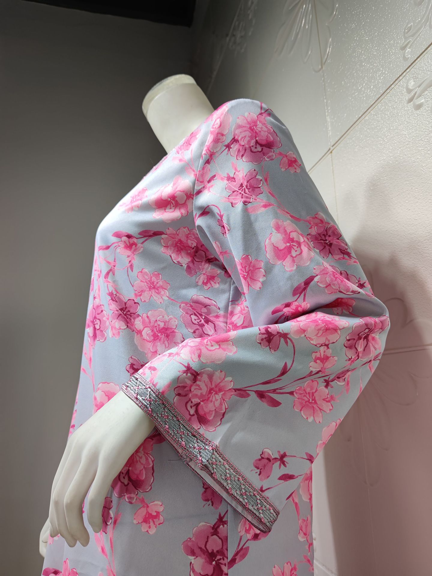 Islamic Maxi Dresses Women Clothing Dubai Abaya Kaftan Turkish Muslim Print Flower Jalabiya Loose Dress Ramadan Eid