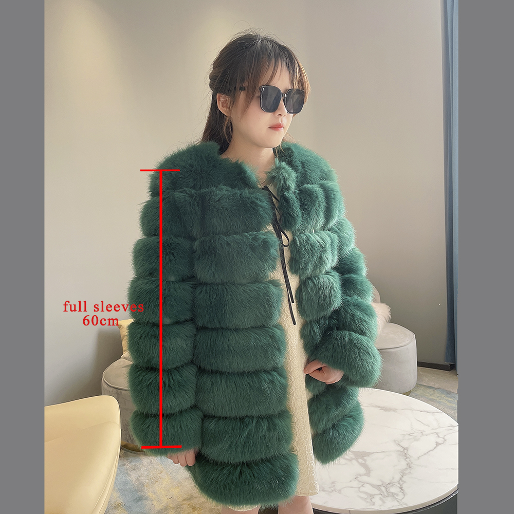 Janefur Long Fake Fur Coat Women Full Sleeves 60cm Artifical Fox Fur WholeWarm Winter Female Faux Fur Jackets